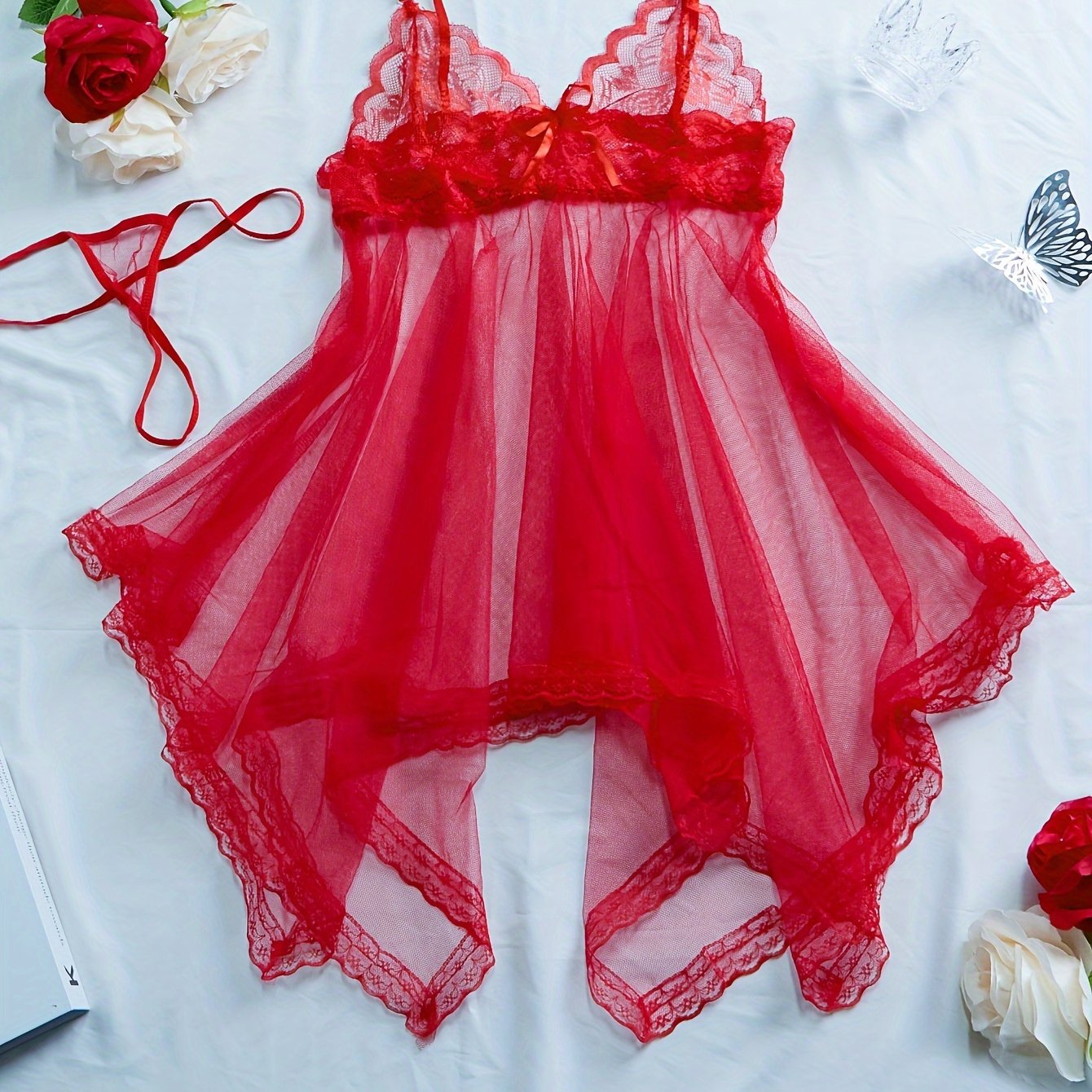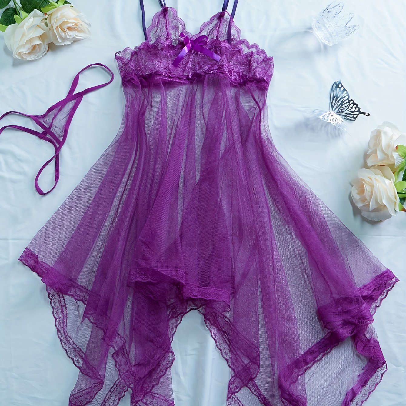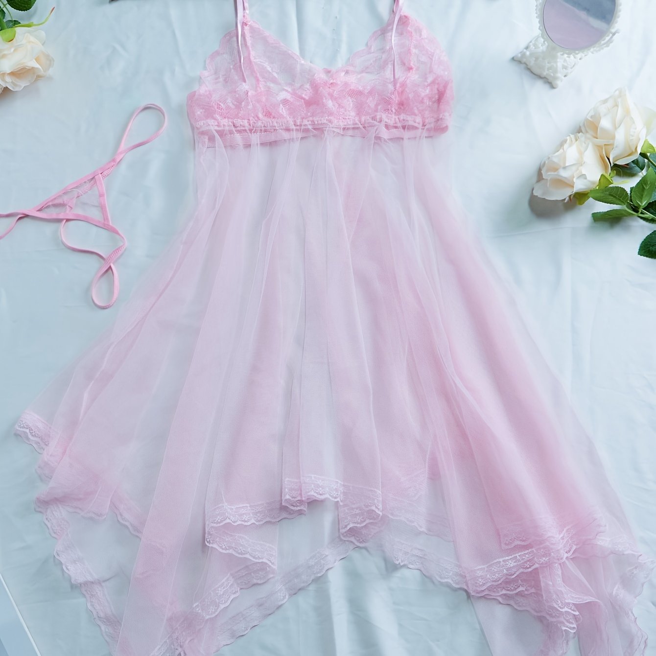 Нижнее белье, кружевное платье из сетки с глубоким V-образным вырезом и трикотажной тканью из полиэстера