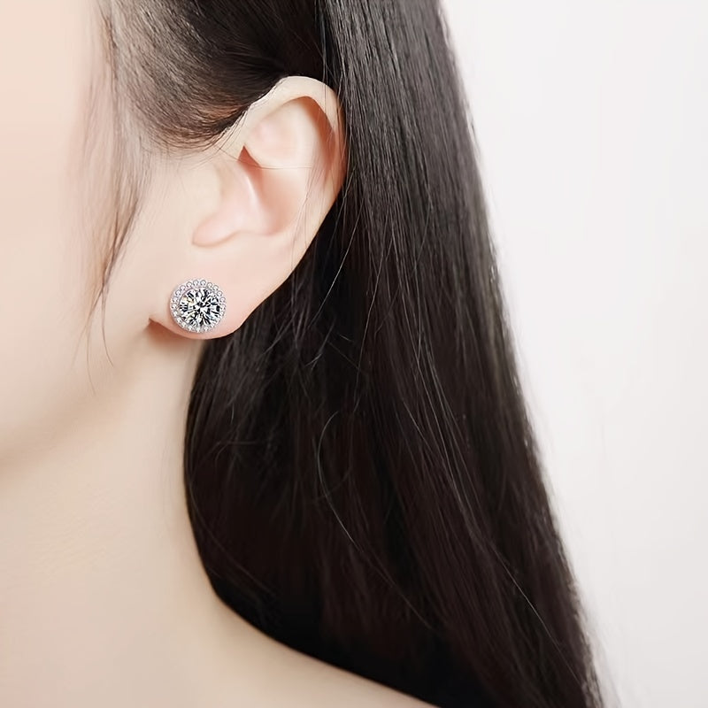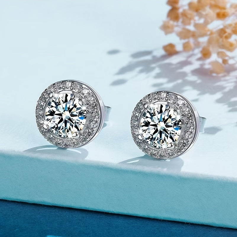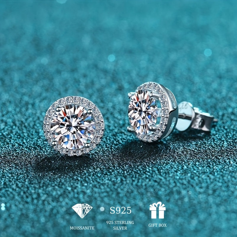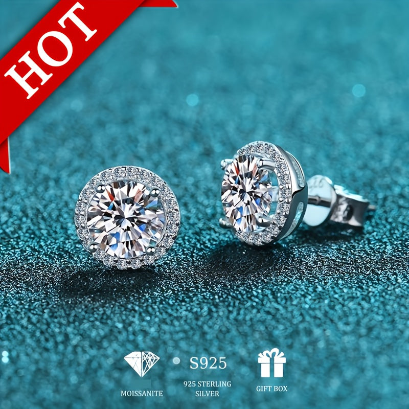 Ошеломляющие круглые серьги-гвоздики из моиссанита в стерлинговом серебре 925 пробы, изящный дизайн, идеальный подарок с подарочной коробкой