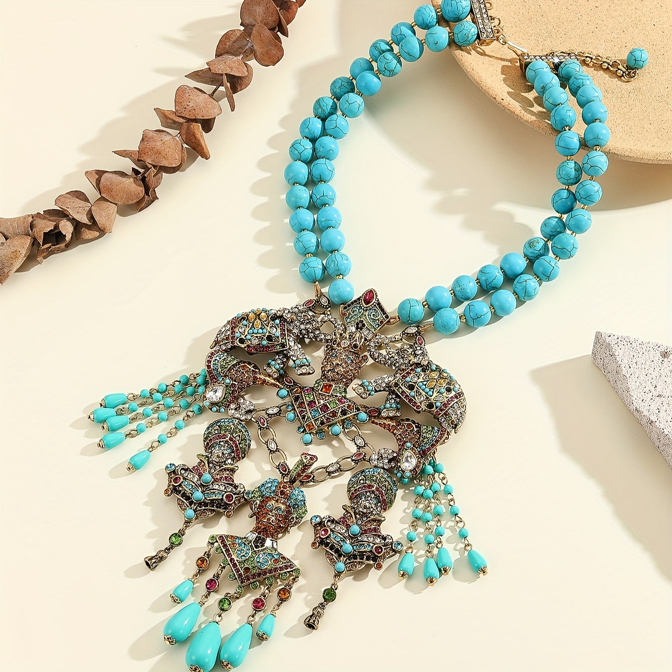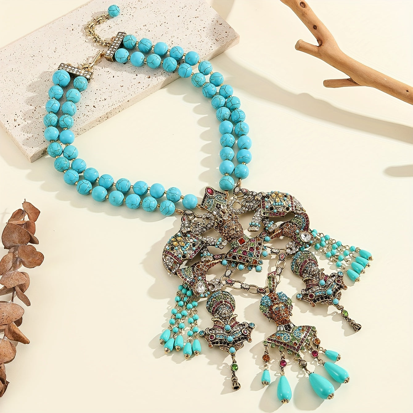 Удивительное ожерелье в винтажном стиле с подвеской в виде леопарда из бирюзового камня и страз, с кисточкой, идеально подходит для вечеринок, выпускных и празднований во время Рамадана.
