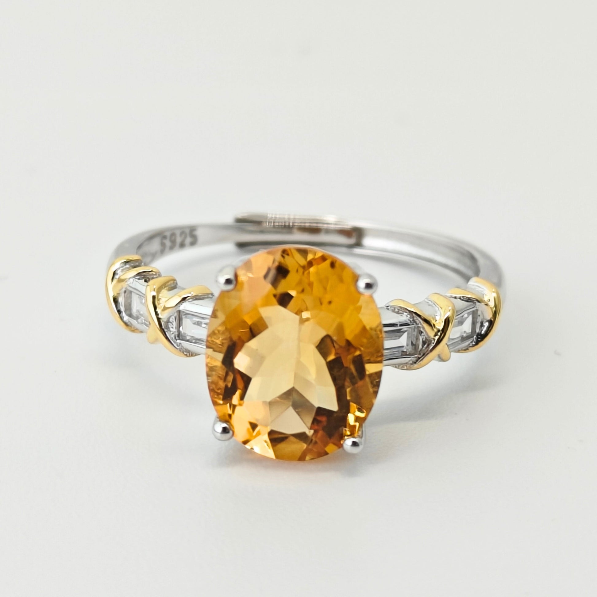 Стильное кольцо из серебра 925 пробы с регулируемой посадкой и натуральным камнем цитрин - идеально для праздников, романтических встреч и особых случаев.