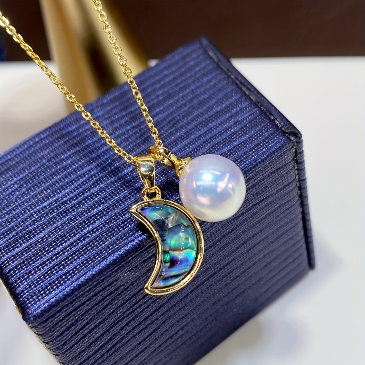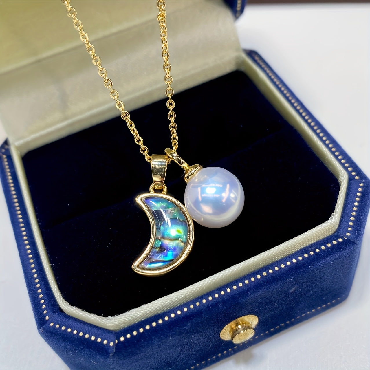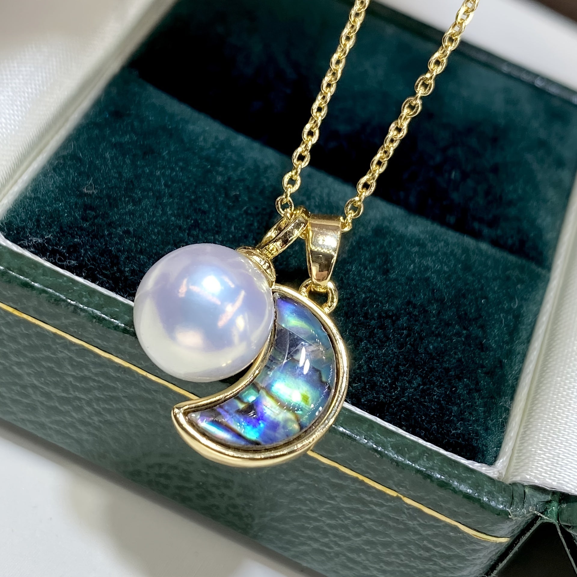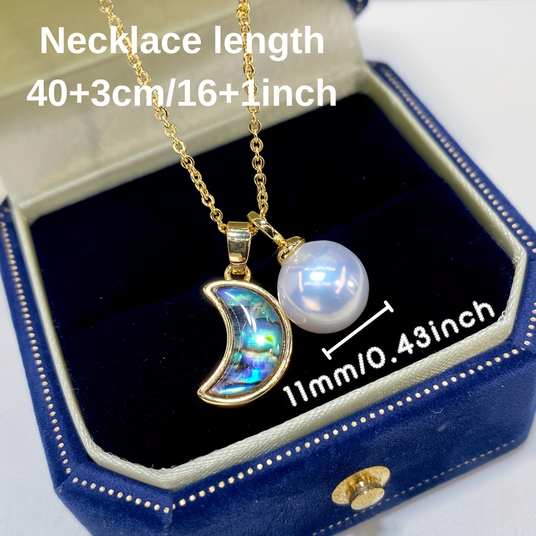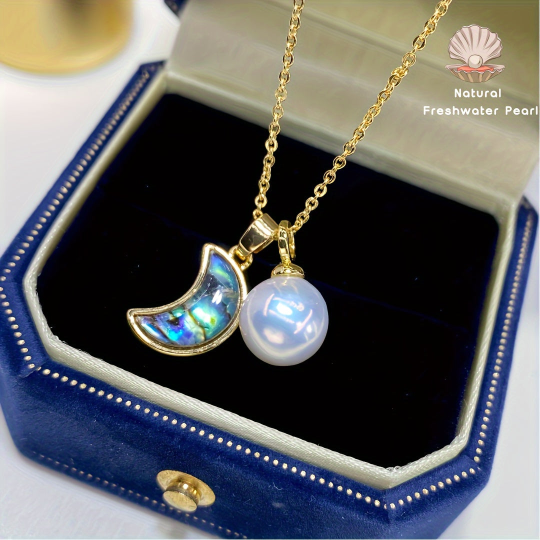 Стильное ожерелье с лунным дизайном из абалона и перламутра с настоящим кулоном Edison Pearl - изысканное мастерство, высококачественные материалы, идеально подходит для девушки, мамы, друзей - отлично для повседневной носки и подарков на день рождения.