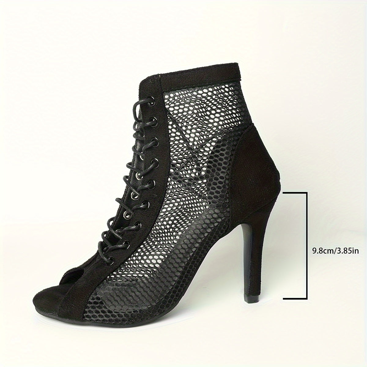 Черные сетчатые ботинки на щиколотке с открытым носком и шнуровкой на высоком стилетто для лета и прогулок на свежем воздухе