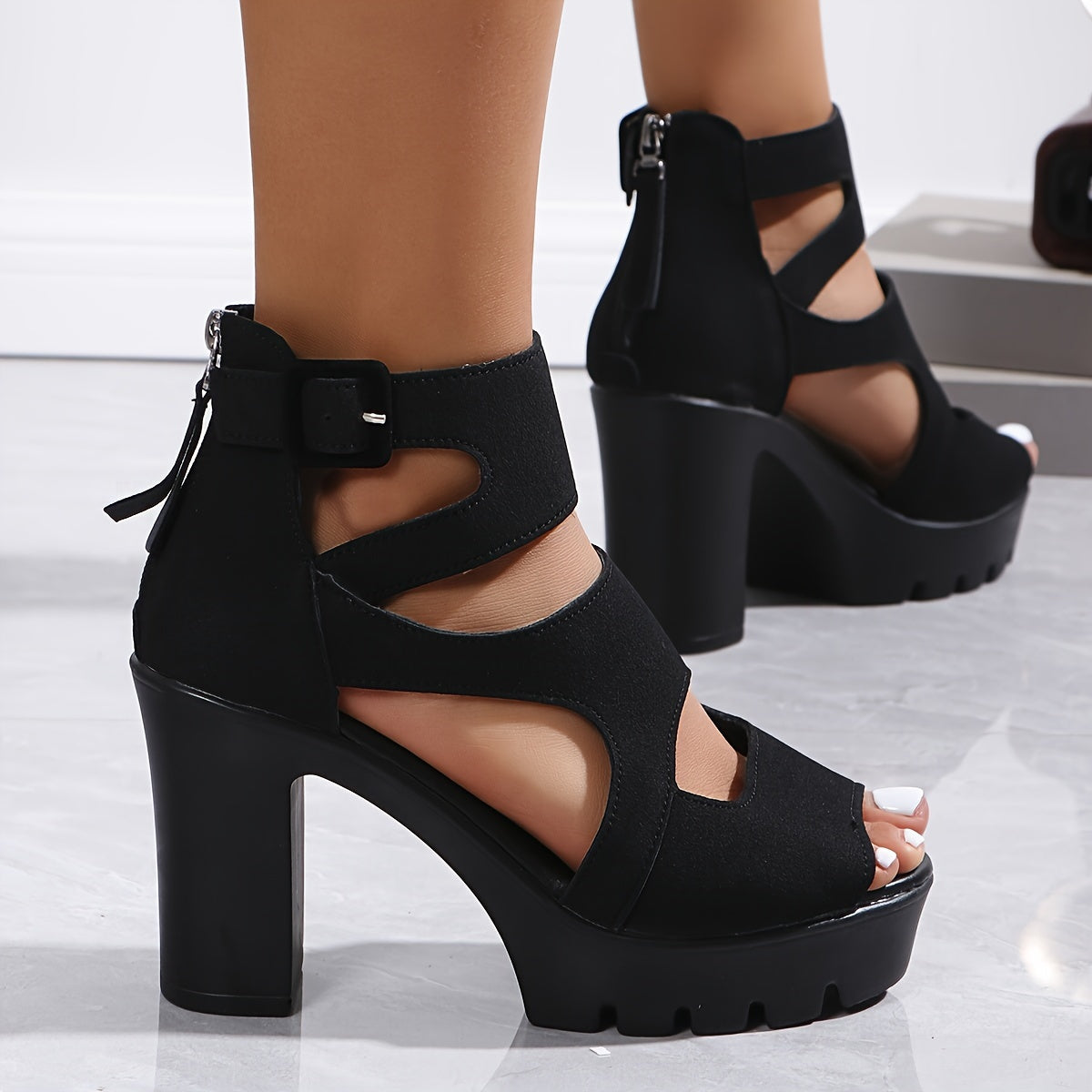 Стильные сандалии на блок-каблуке с дышащей сеткой, открытым носком, задней молнией и модным дизайном для всех сезонов.