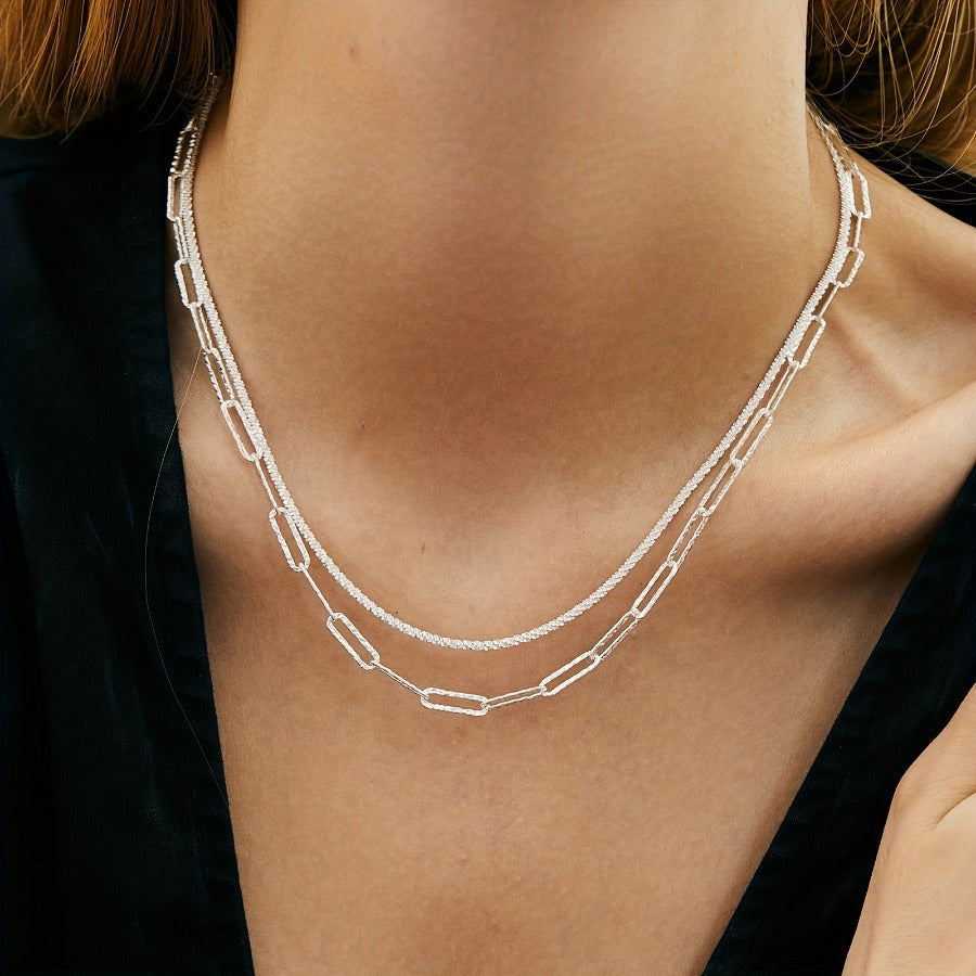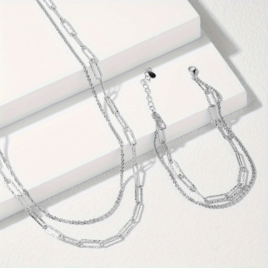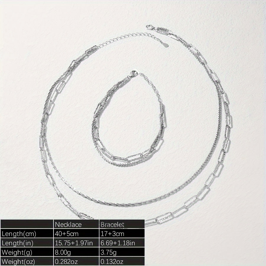 Стильный дуэт: набор ожерелья и браслета из серебра 925 пробы - с шикарным дизайном цепочки в виде скрепки, идеально подходит для повседневной носки или особых случаев.