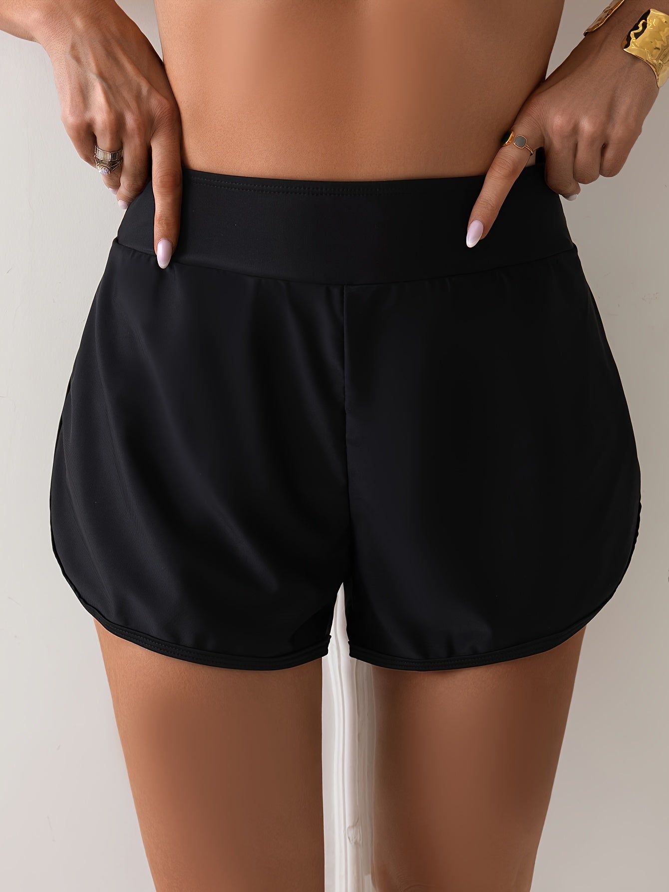 Стильные купальные шорты с высокой талией для женщин с двойным слоем и боковым разрезом, идеальные для пляжа или повседневной носки.