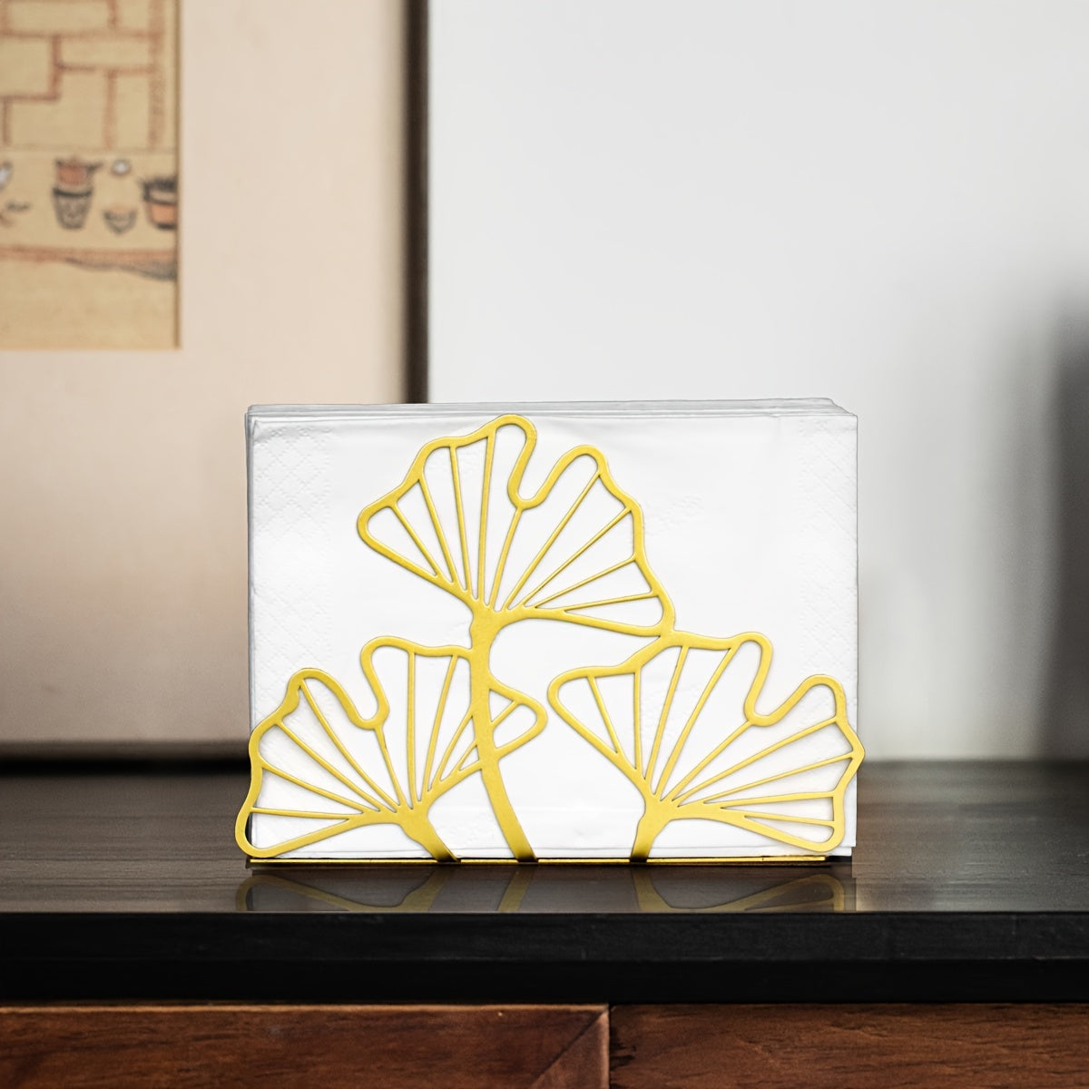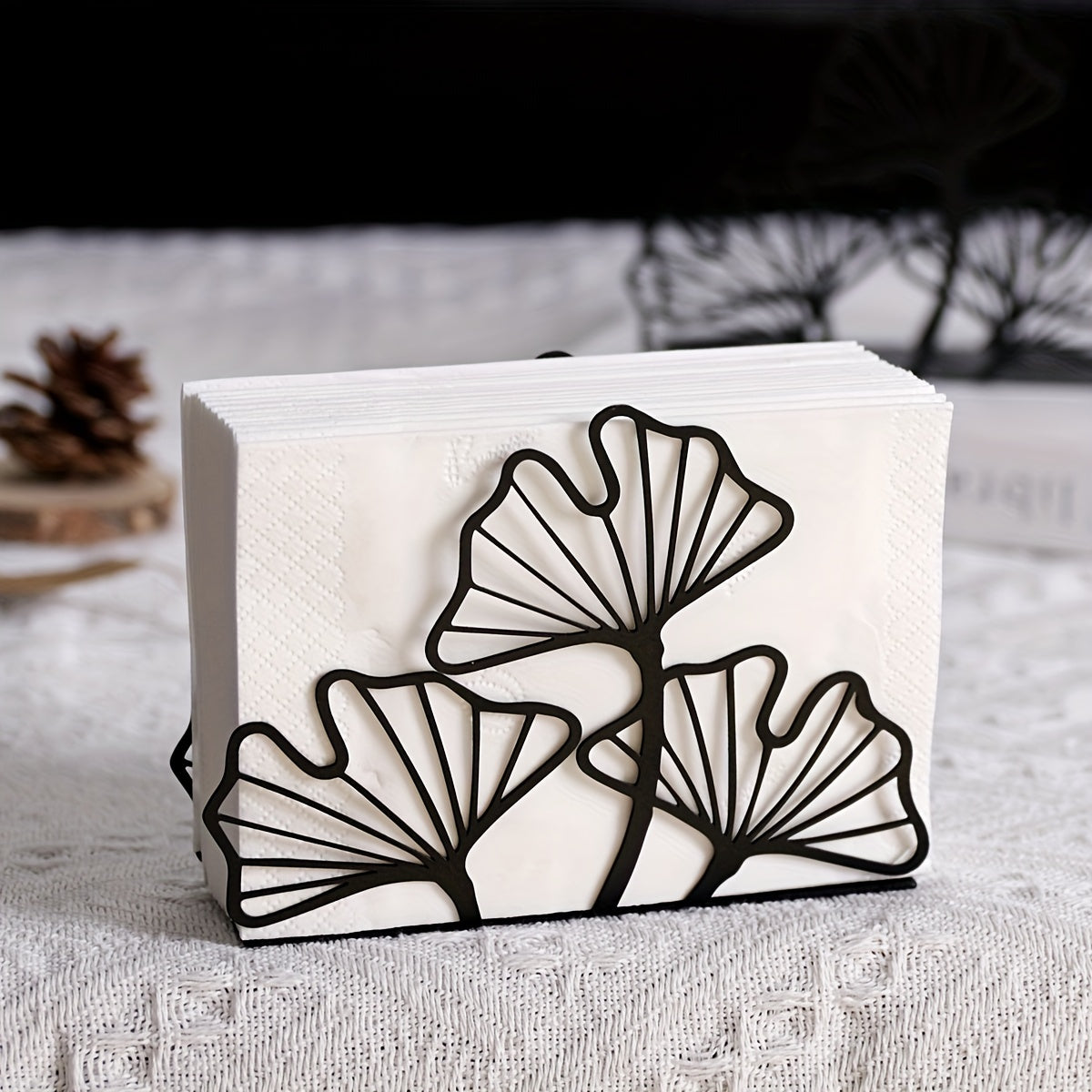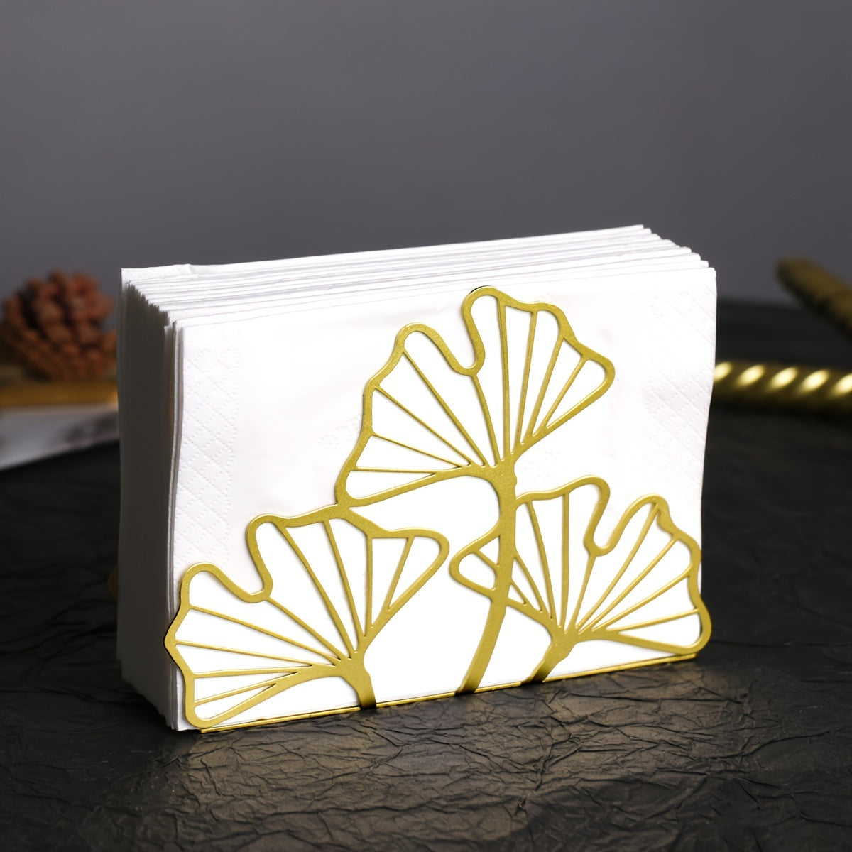 Металлический держатель для салфеток с дизайном листа гинкго для обеденных столов и кухонного декора