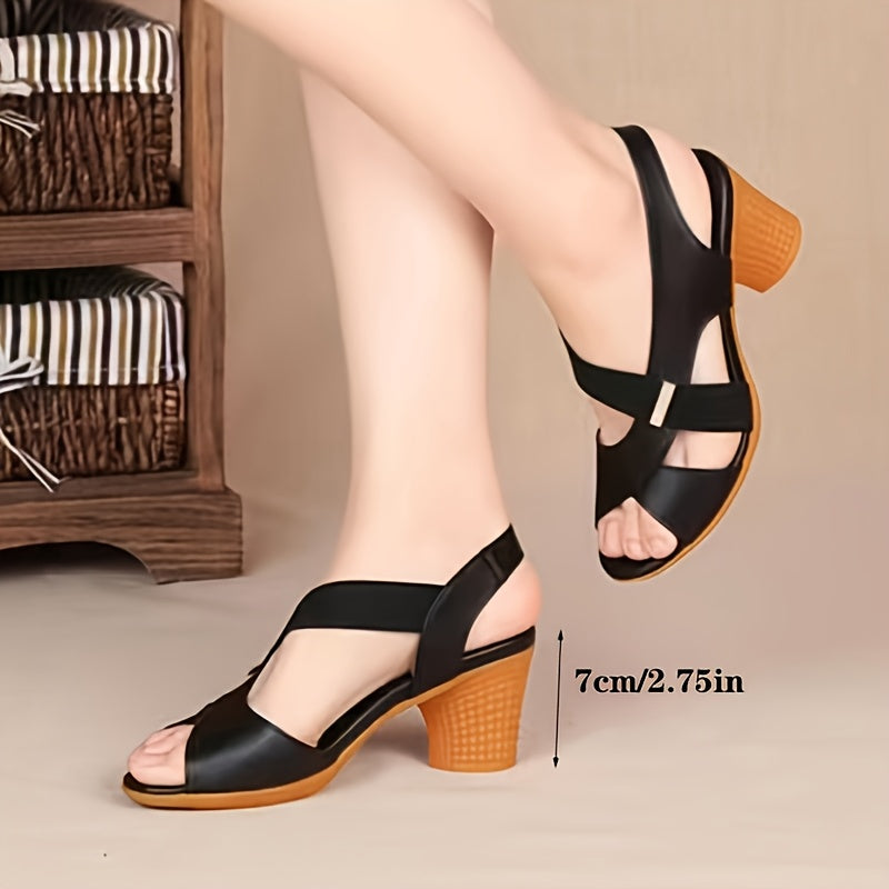 Стильные сандалии на среднем каблуке с открытым носком и застежкой на липучке, изготовленные из синтетических материалов для круглогодичного ношения.