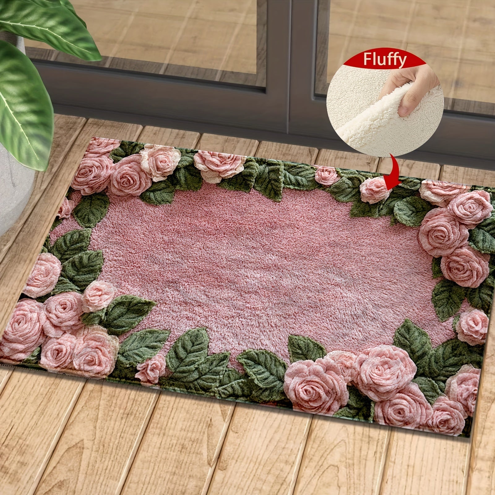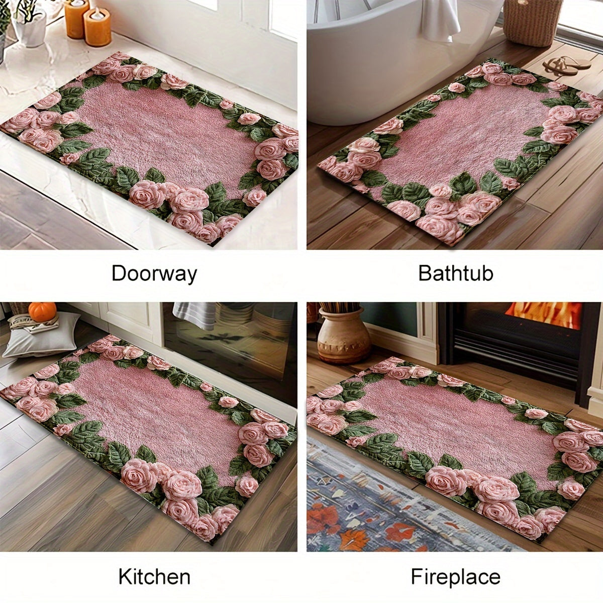 Стильный розовый коврик для ванной с нескользящей основой - машинная стирка, низкий профиль с TPR-основой, вязаная ткань для ванной, спальни, кухни и прихожей - идеален для зимнего декора дома, подходит для уличных зон