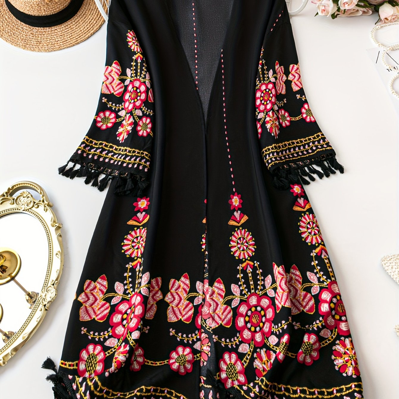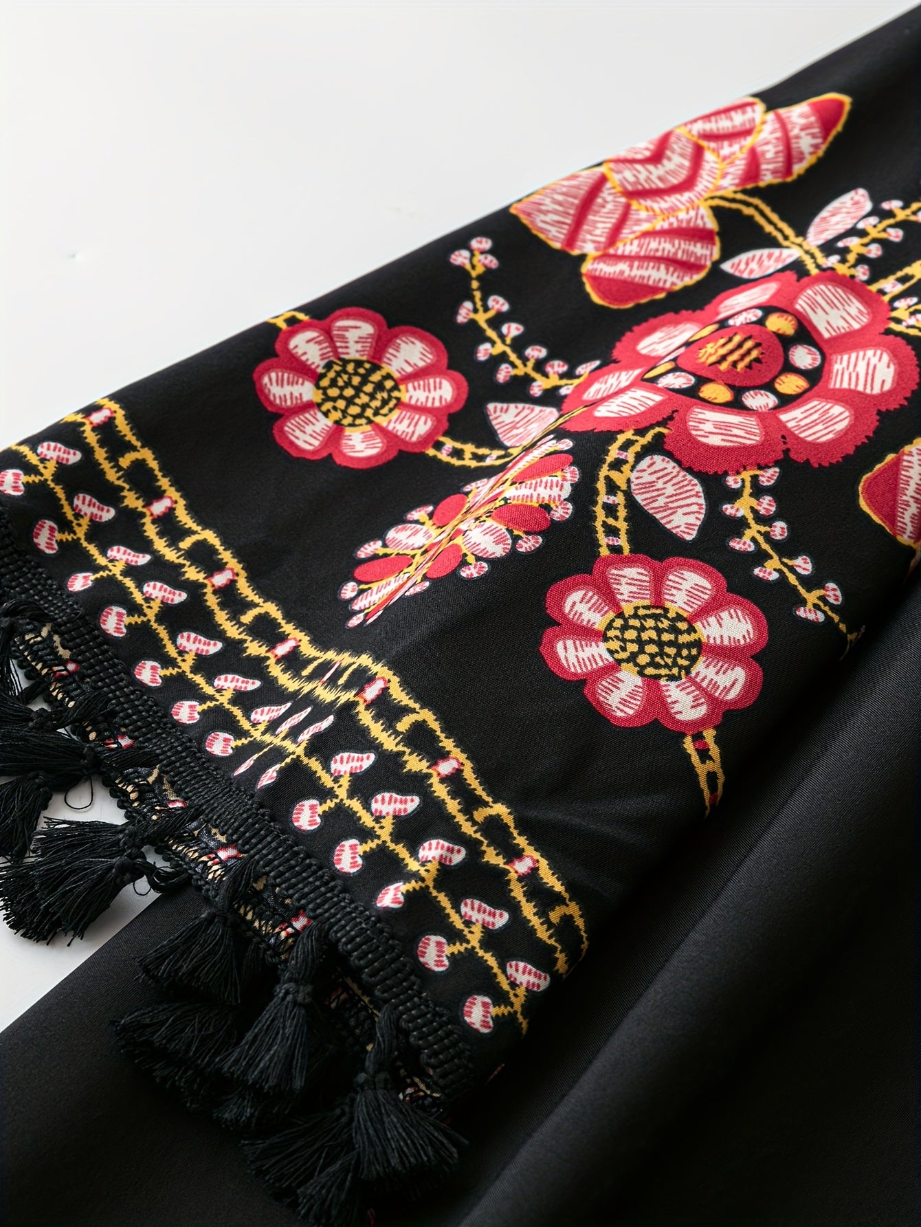 Кардиган из прозрачного полиэстера с цветочным принтом и кисточками для женщин большого размера на весну и лето