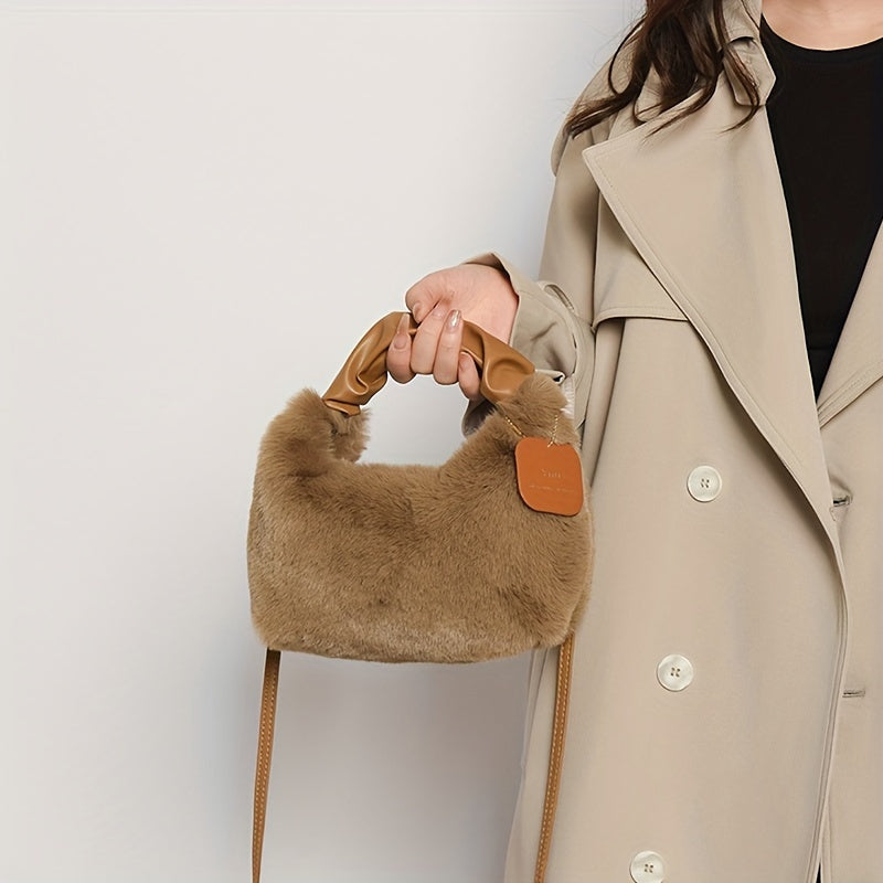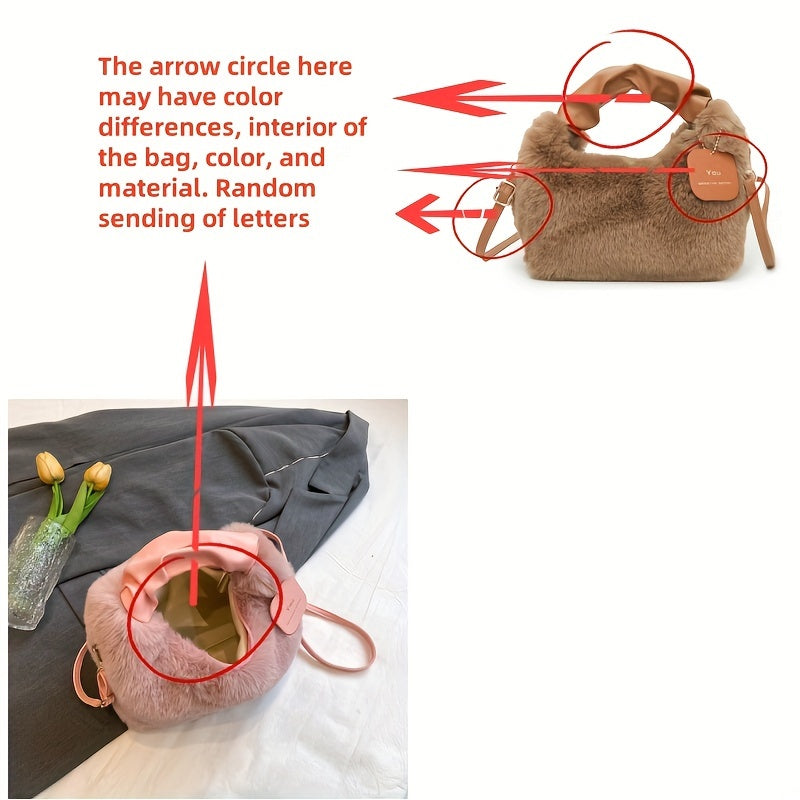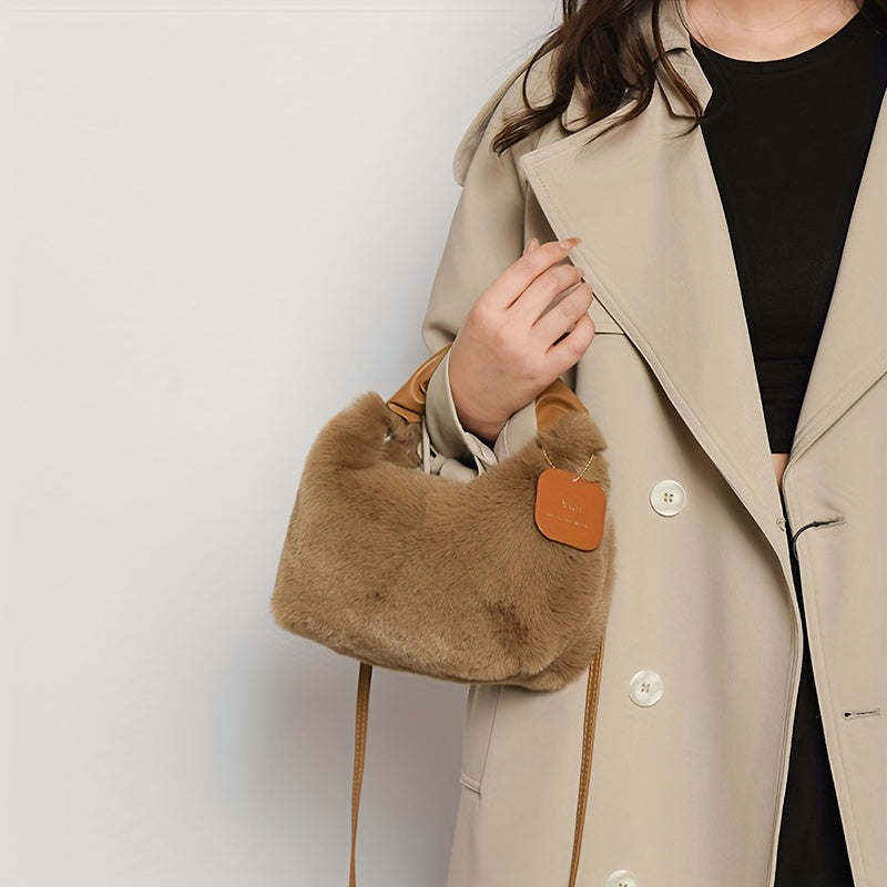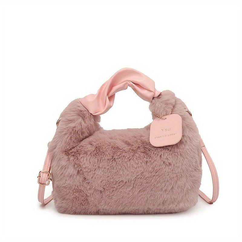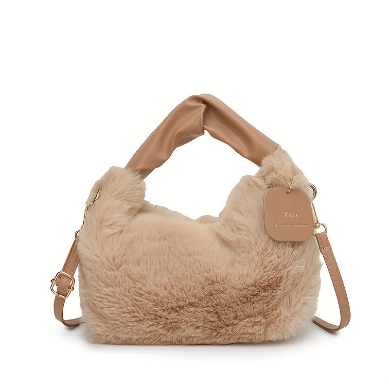 Стильная плюшевая сумка для путешествий с милыми деталями из искусственного меха, идеально подходящая для осенней и зимней моды.