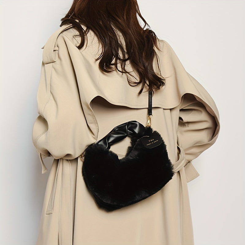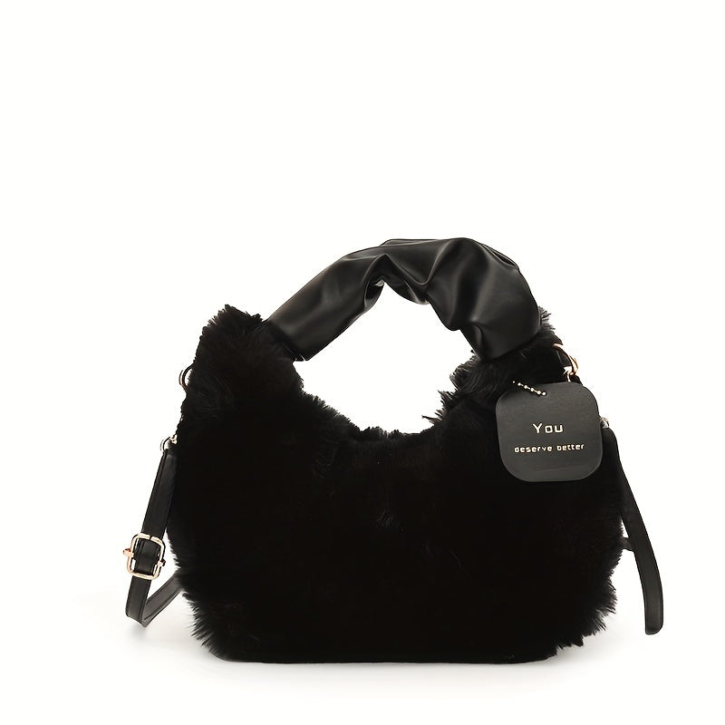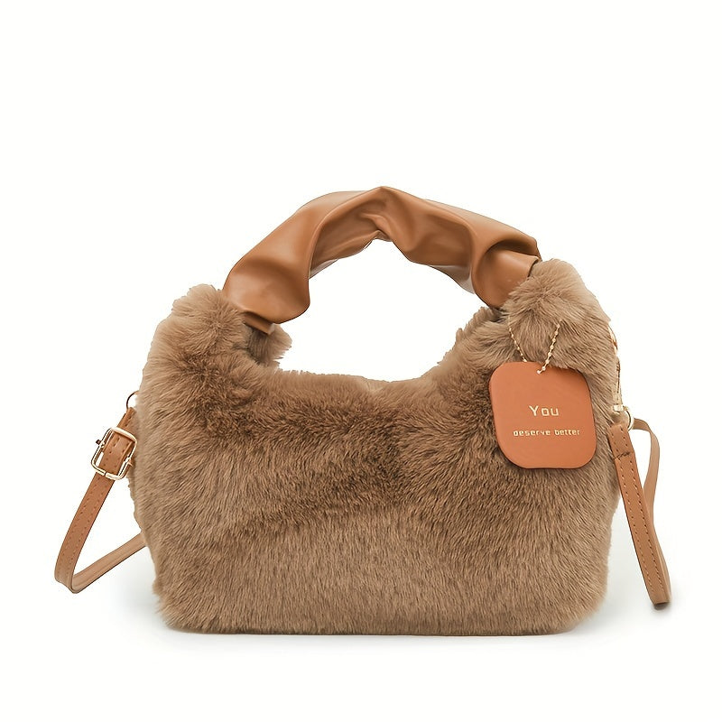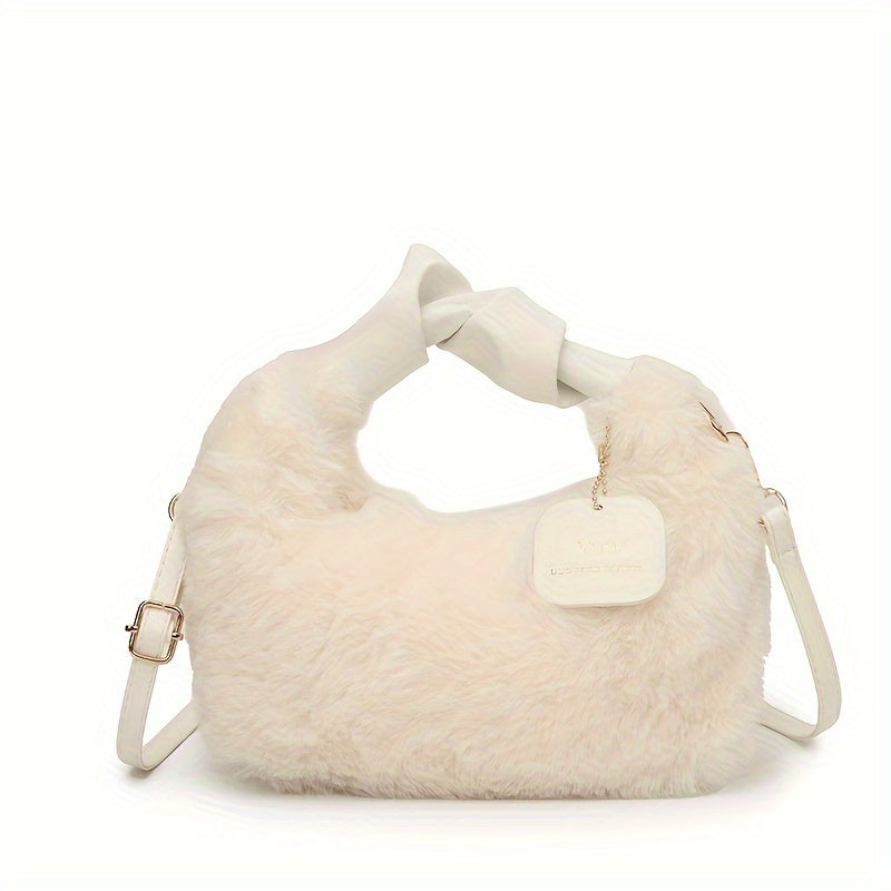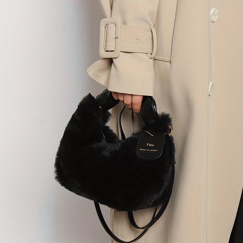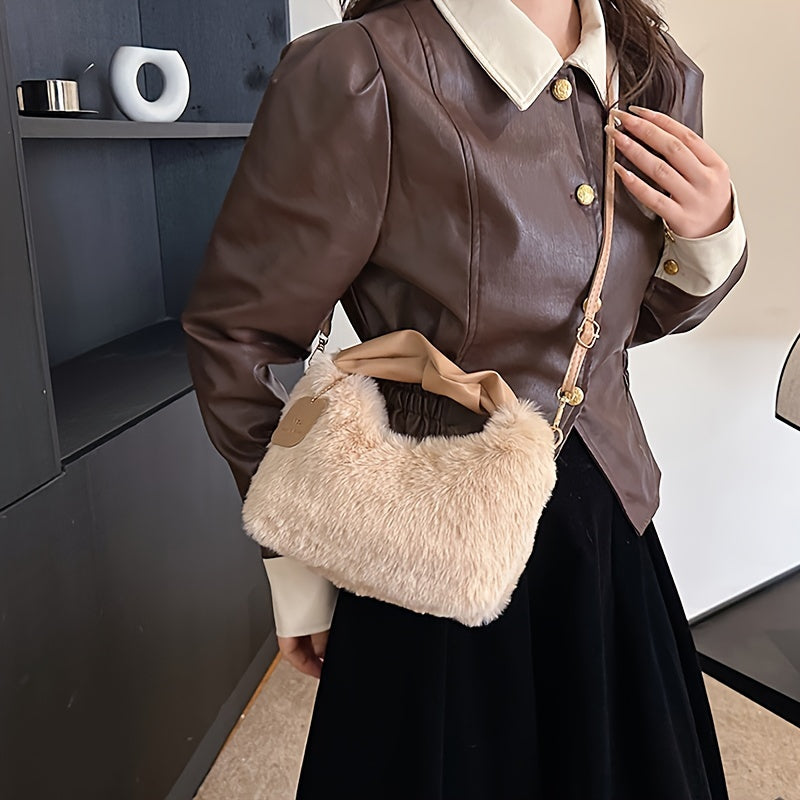 Стильная плюшевая сумка для путешествий с милыми деталями из искусственного меха, идеально подходящая для осенней и зимней моды.