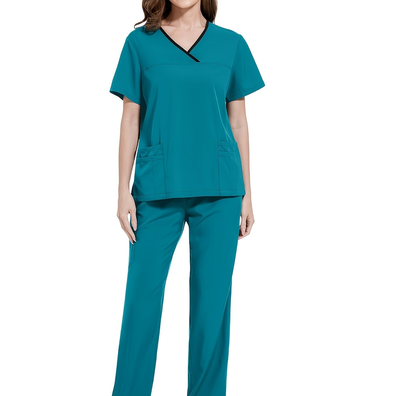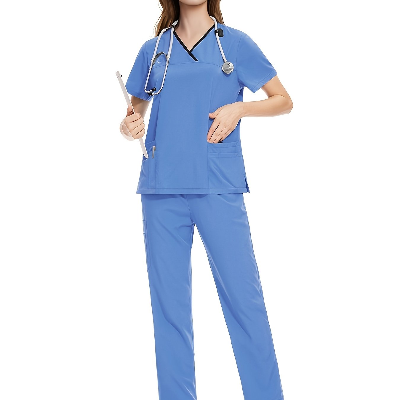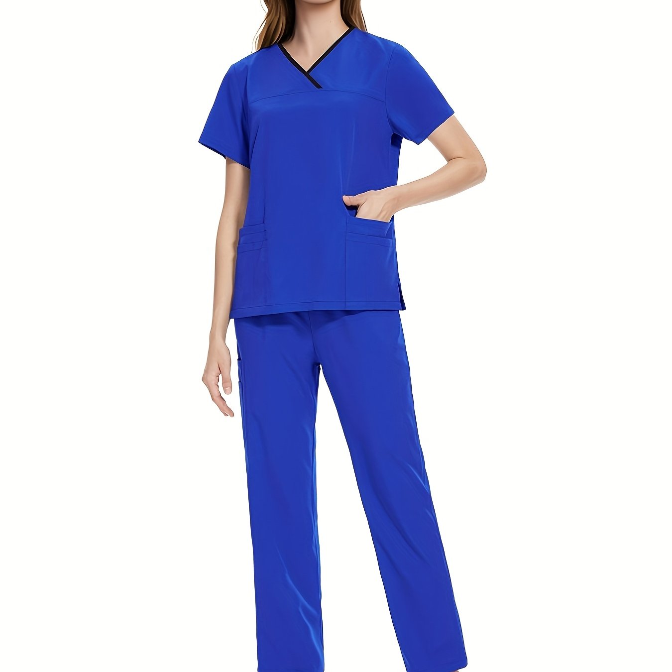 Медицинский костюм из полиэстера и спандекса, V-образный вырез, карман, повседневный, унисекс, для всех сезонов