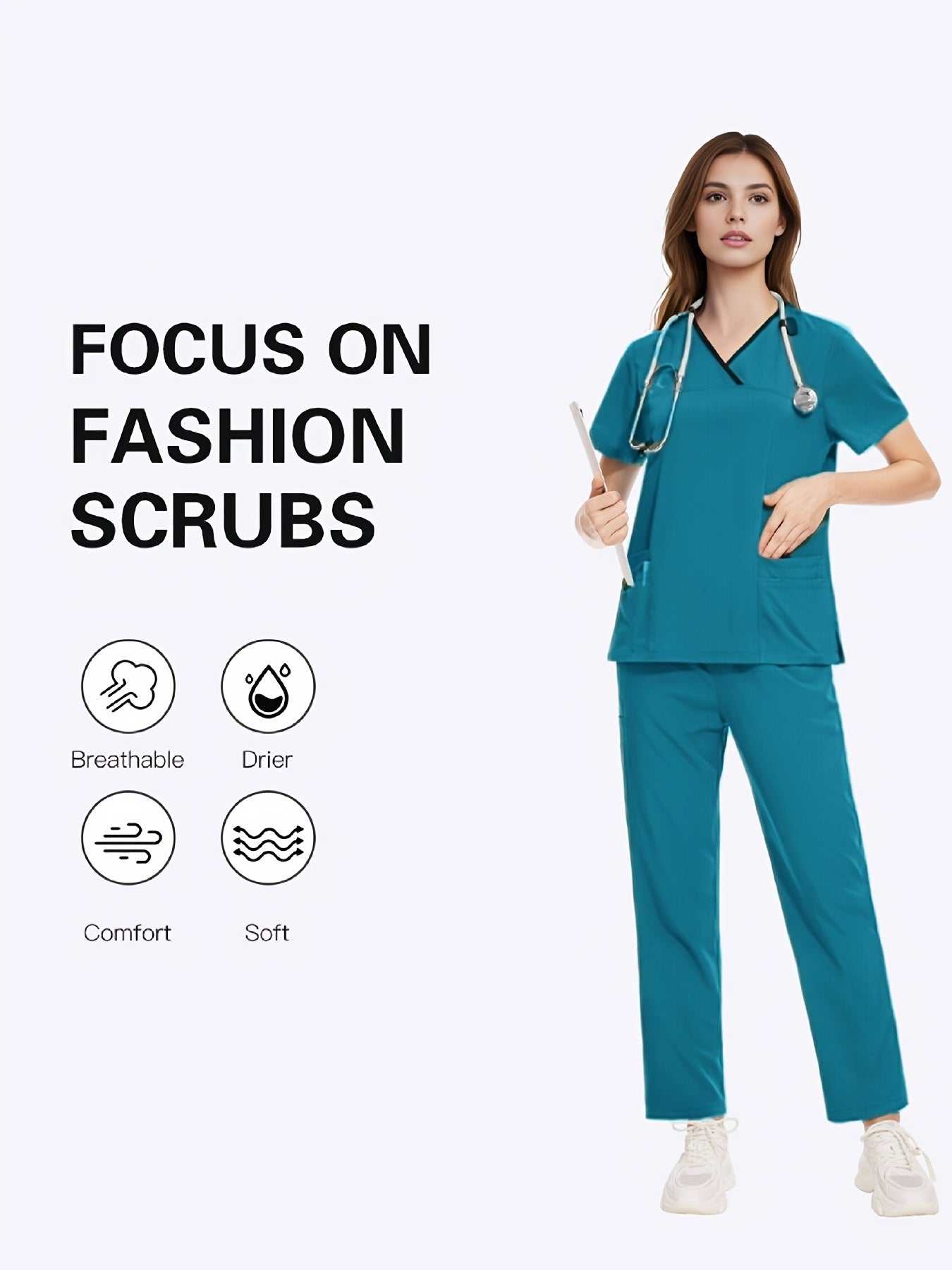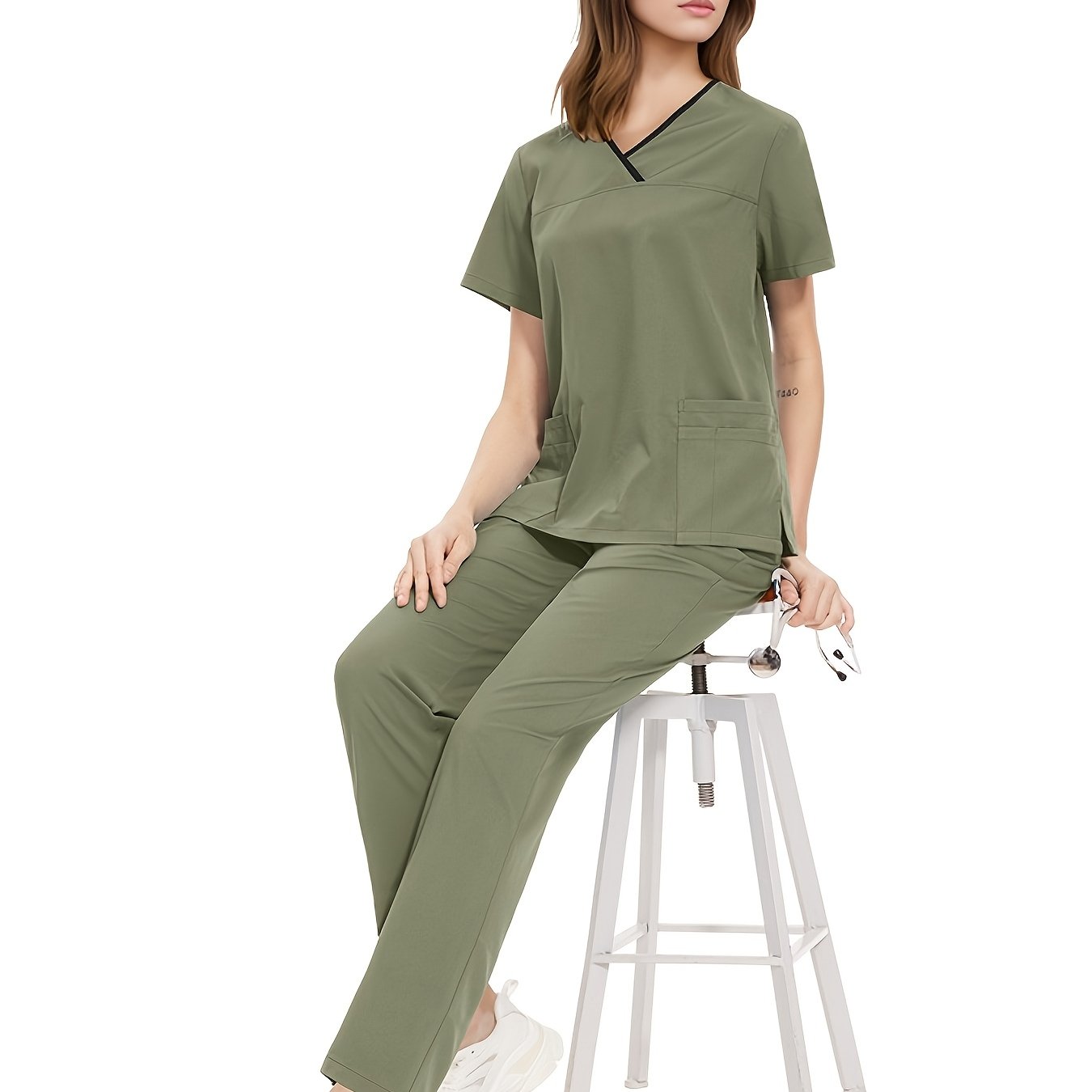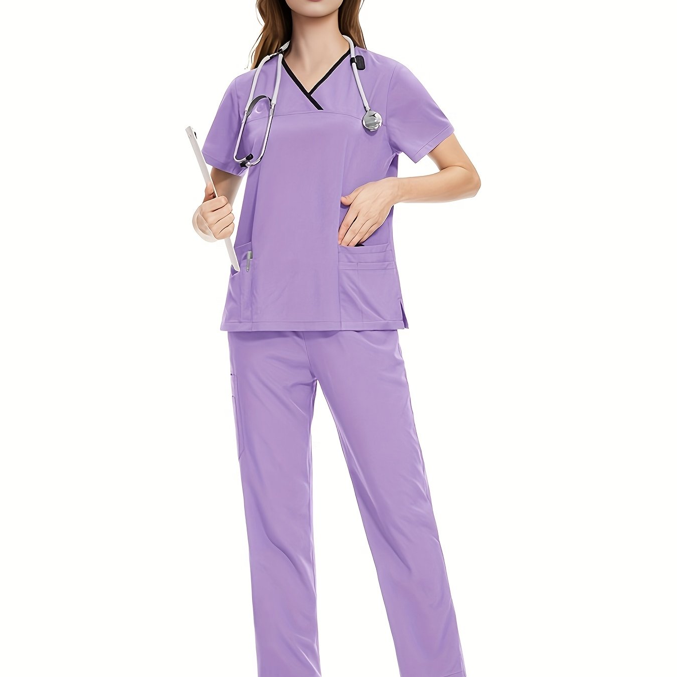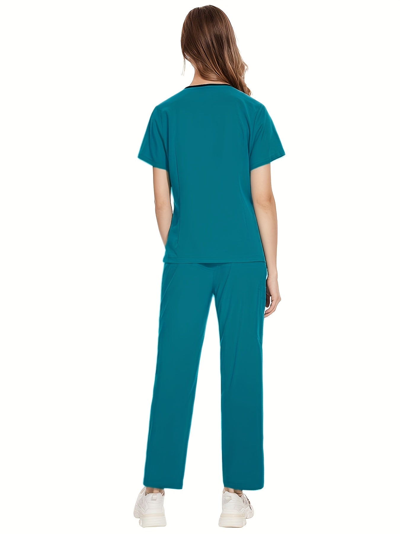 Медицинский костюм из полиэстера и спандекса, V-образный вырез, карман, повседневный, унисекс, для всех сезонов