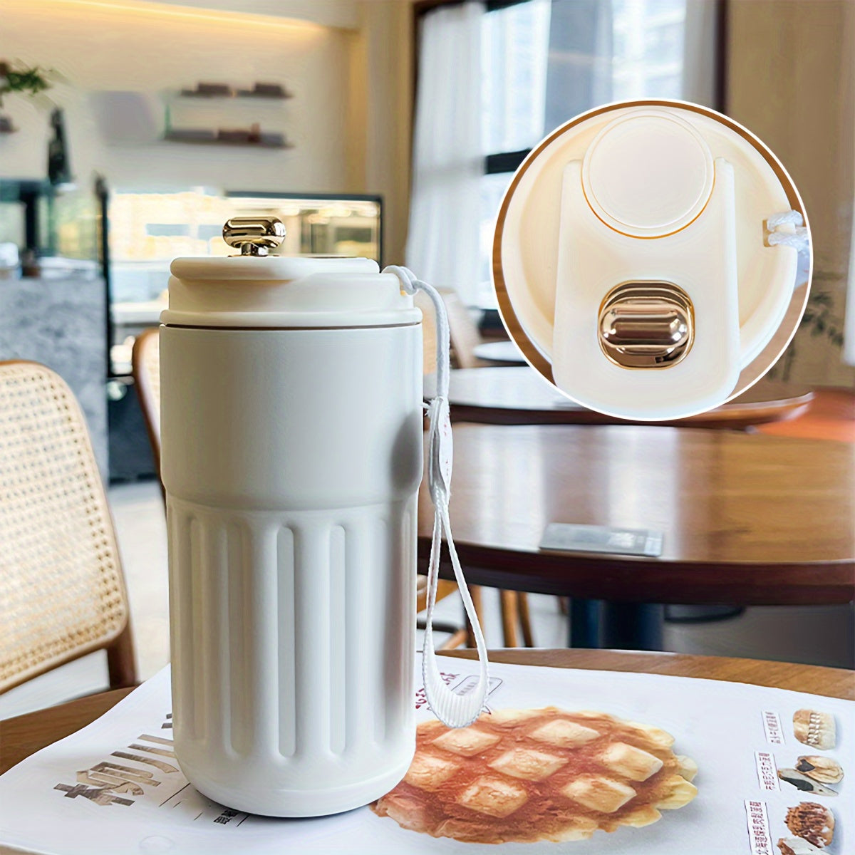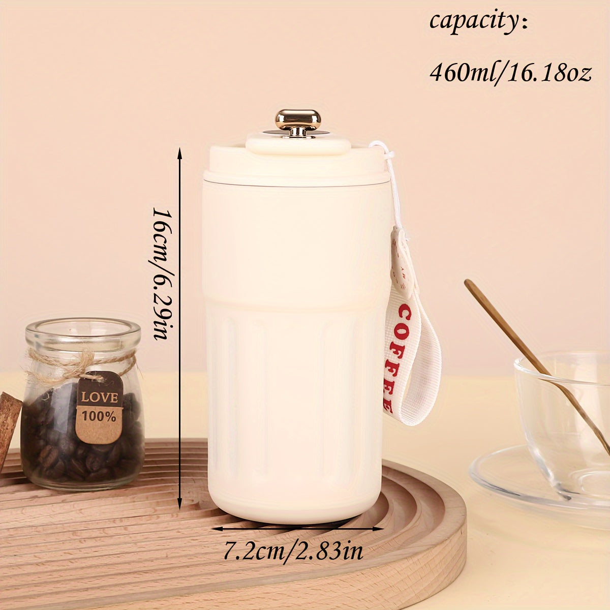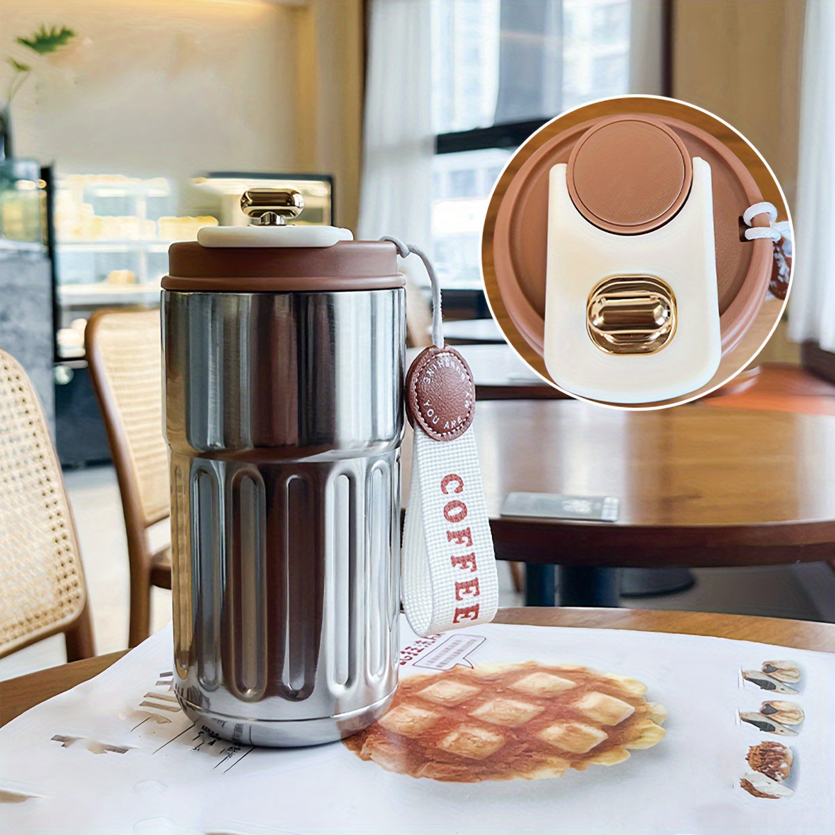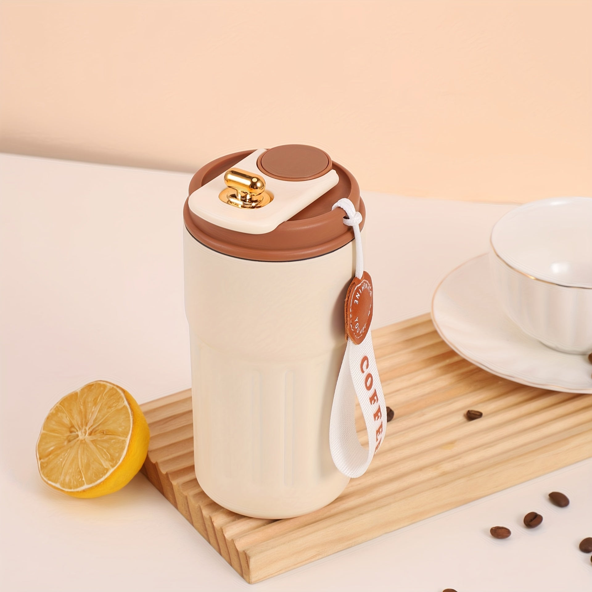Стильная кофейная чашка из нержавеющей стали с двойной изоляцией, идеально подходящая как для мужчин, так и для женщин. Оснащена летним дизайном с ремешком, минималистичная и элегантная.