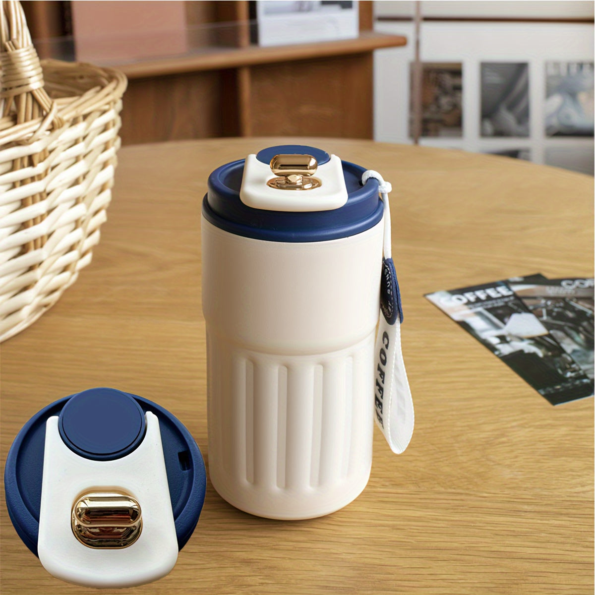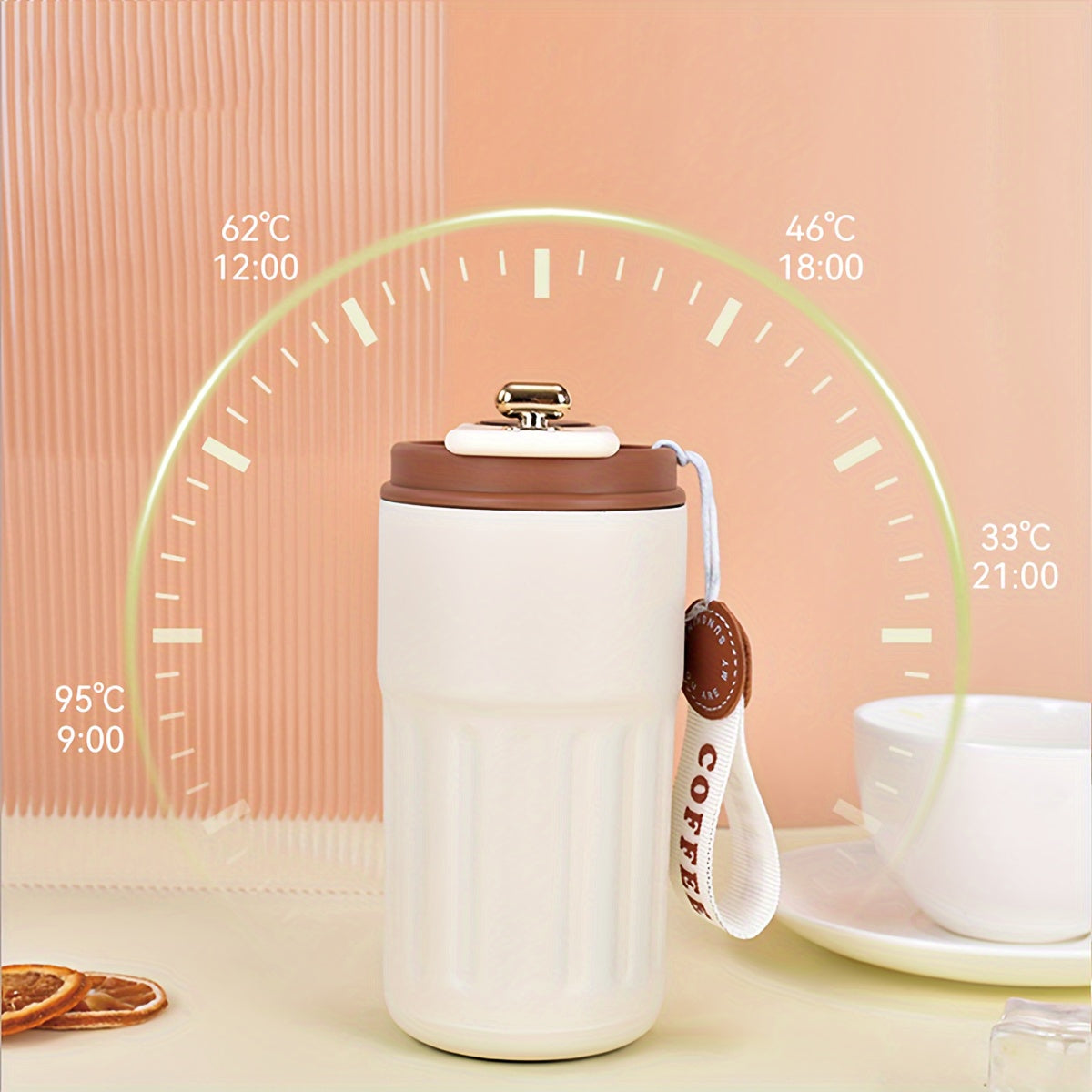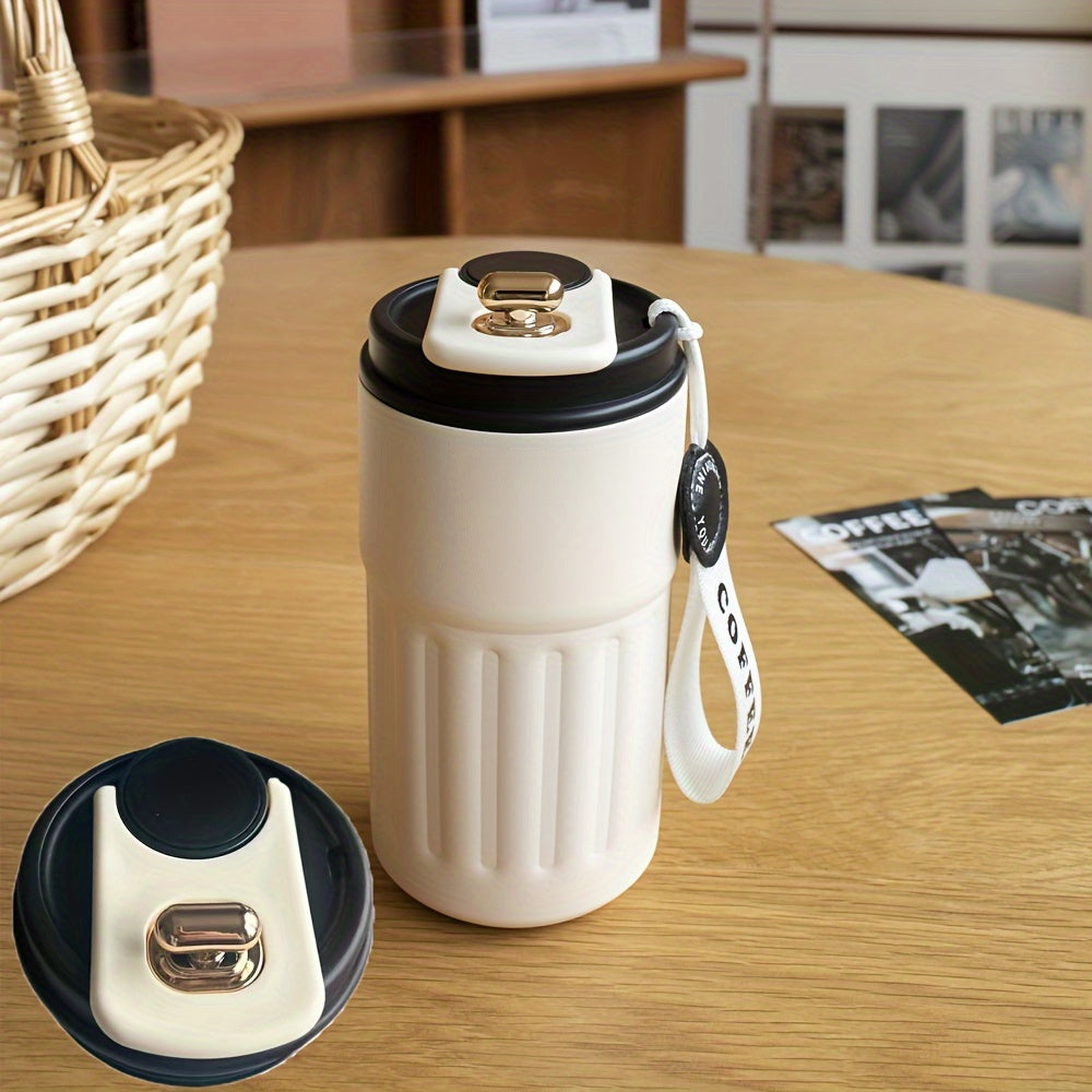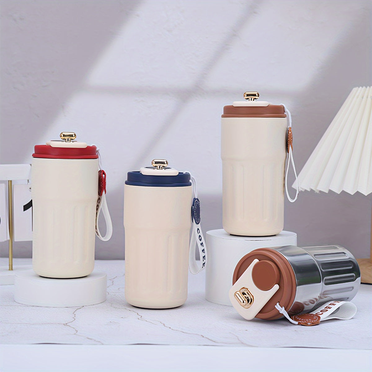 Стильная кофейная чашка из нержавеющей стали с двойной изоляцией, идеально подходящая как для мужчин, так и для женщин. Оснащена летним дизайном с ремешком, минималистичная и элегантная.