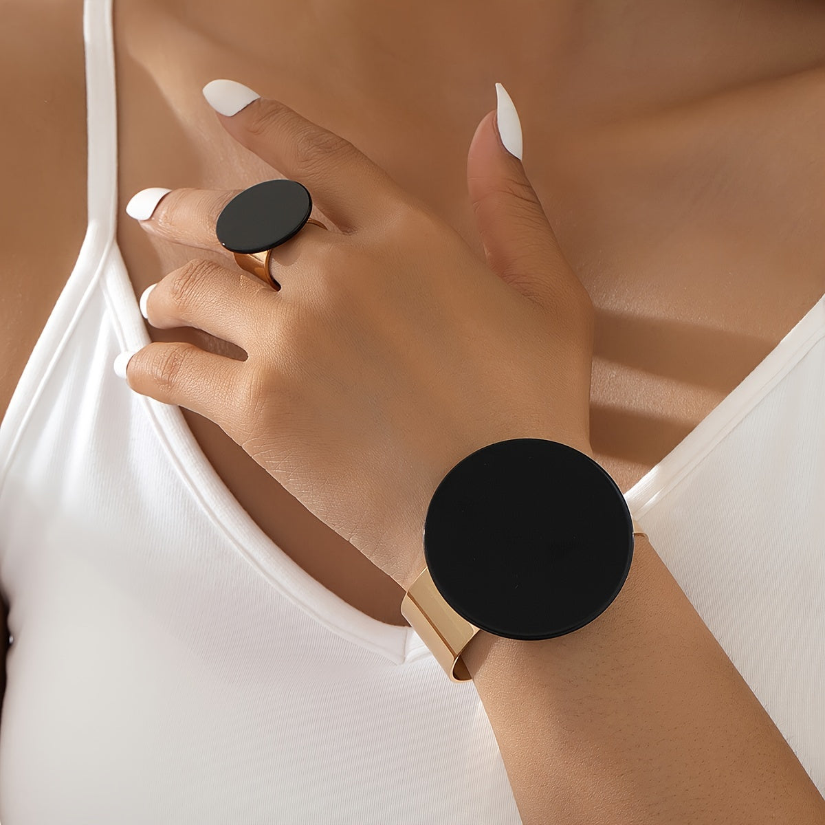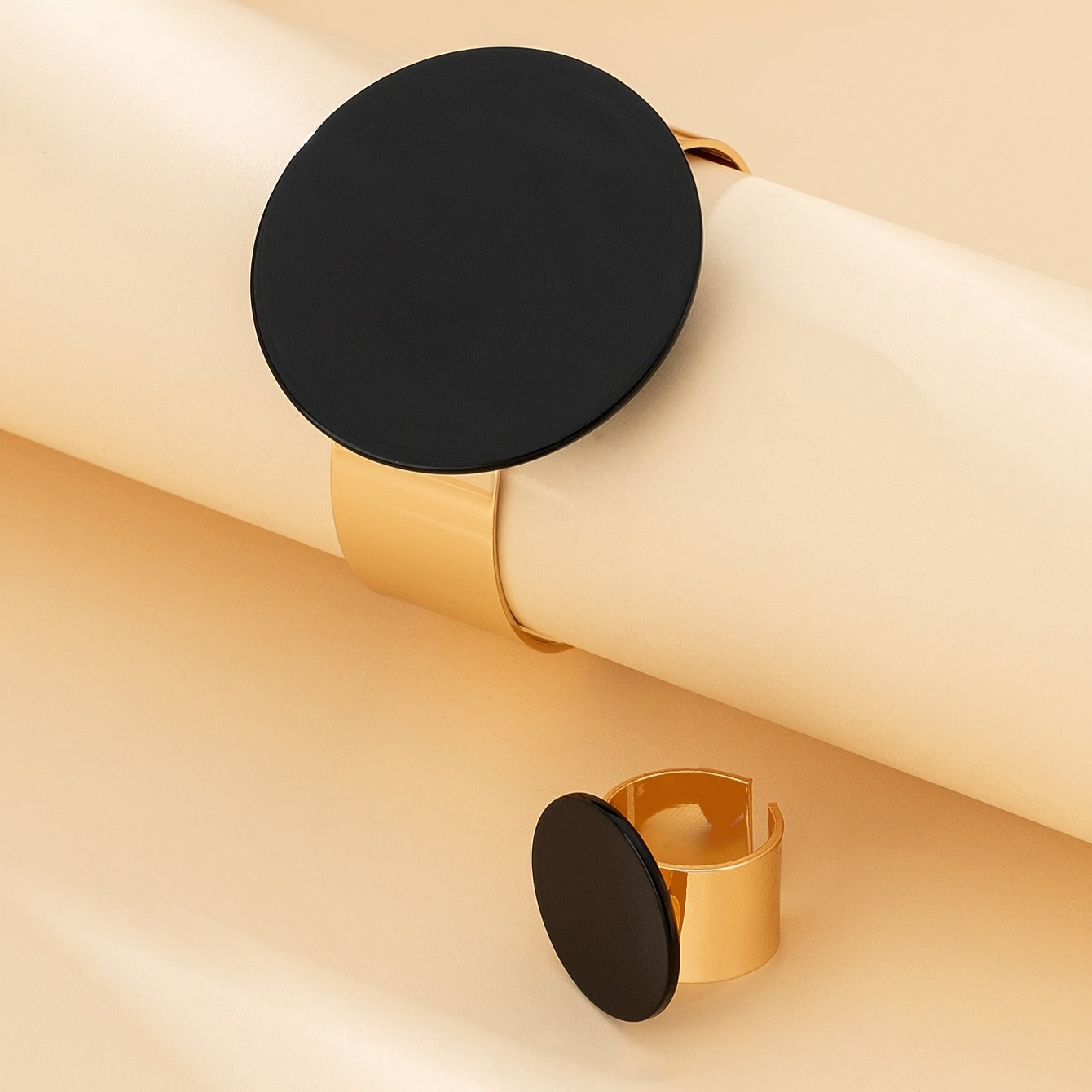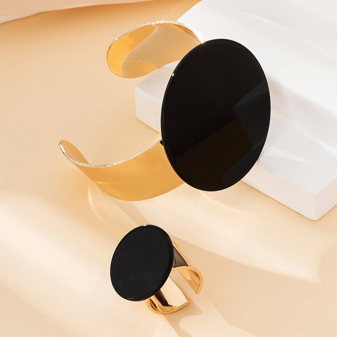Стильный женский модный комплект: цветной круглый браслет и модное кольцо с геометрическим узором - идеально подходит как для повседневной одежды, так и для вечеринок.
