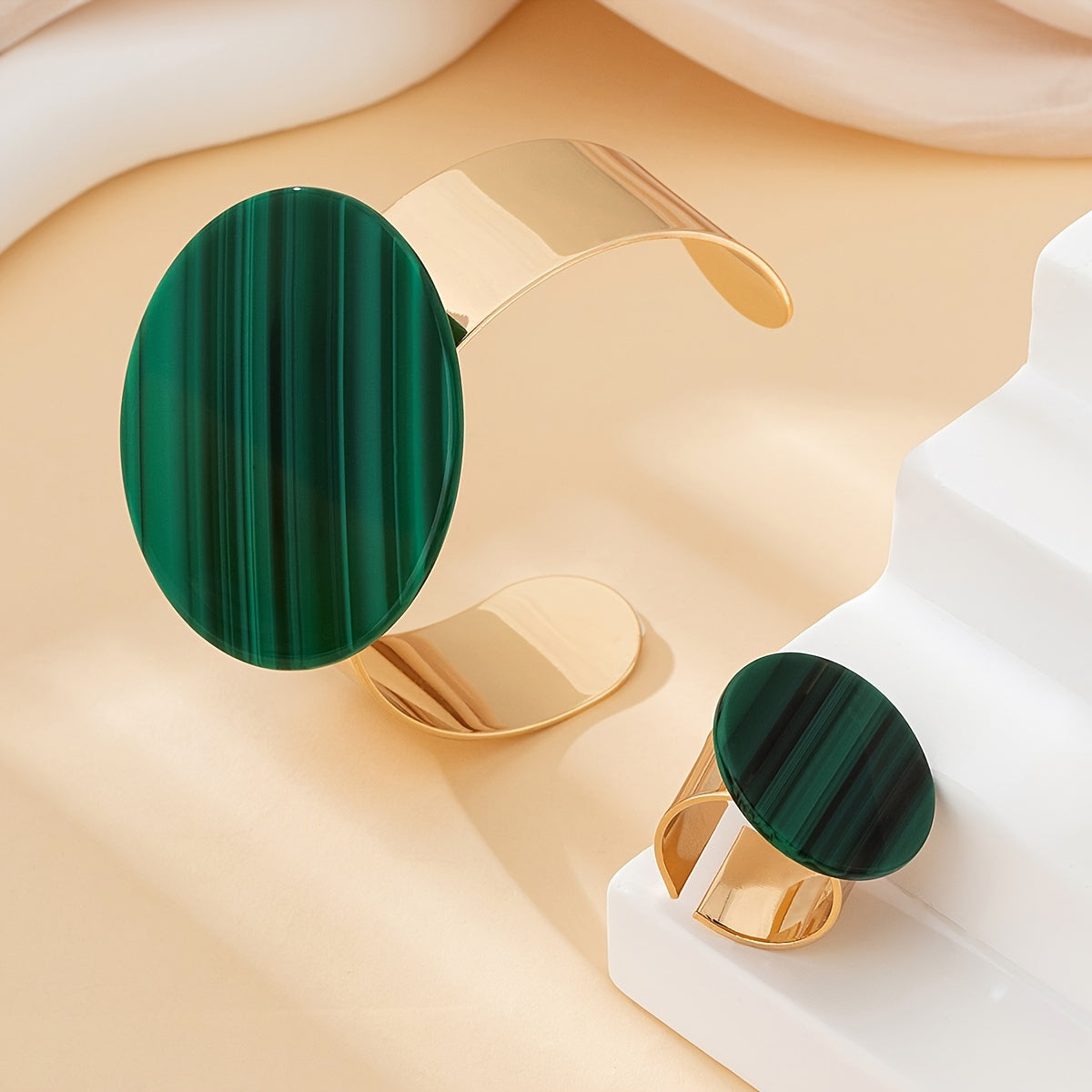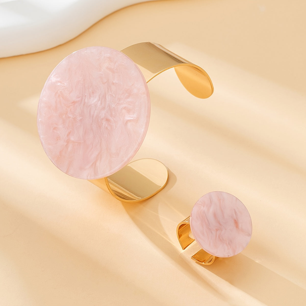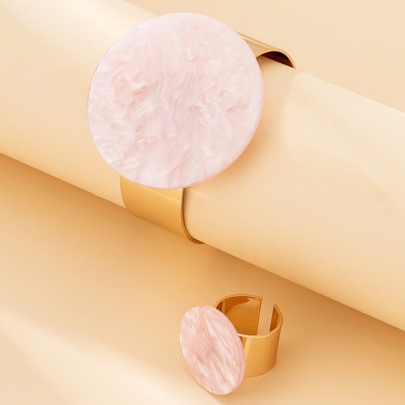 Стильный женский модный комплект: цветной круглый браслет и модное кольцо с геометрическим узором - идеально подходит как для повседневной одежды, так и для вечеринок.