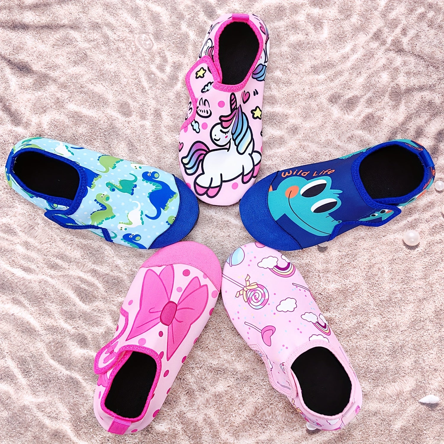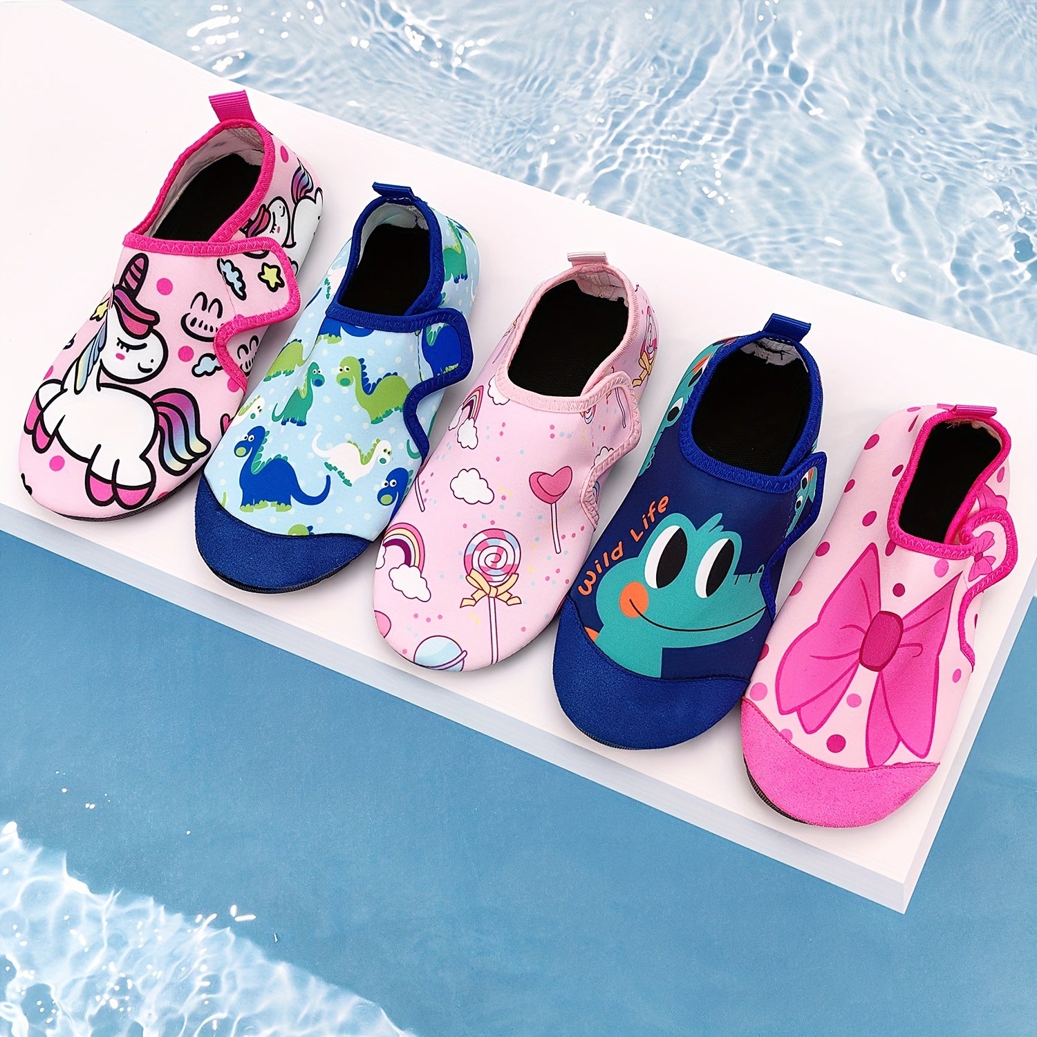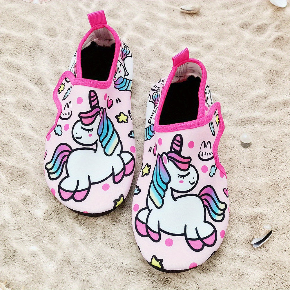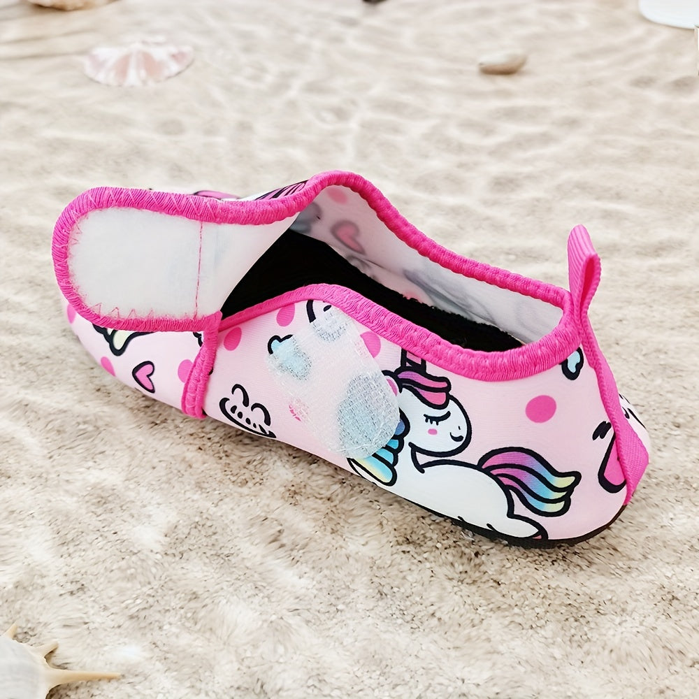 Детские летние водные тапочки с мультяшным принтом, легкая быстро сохнущая ткань, верх из ТПР, подошва из ТПР
