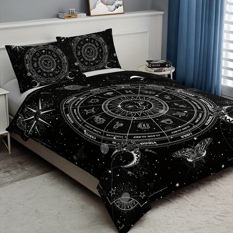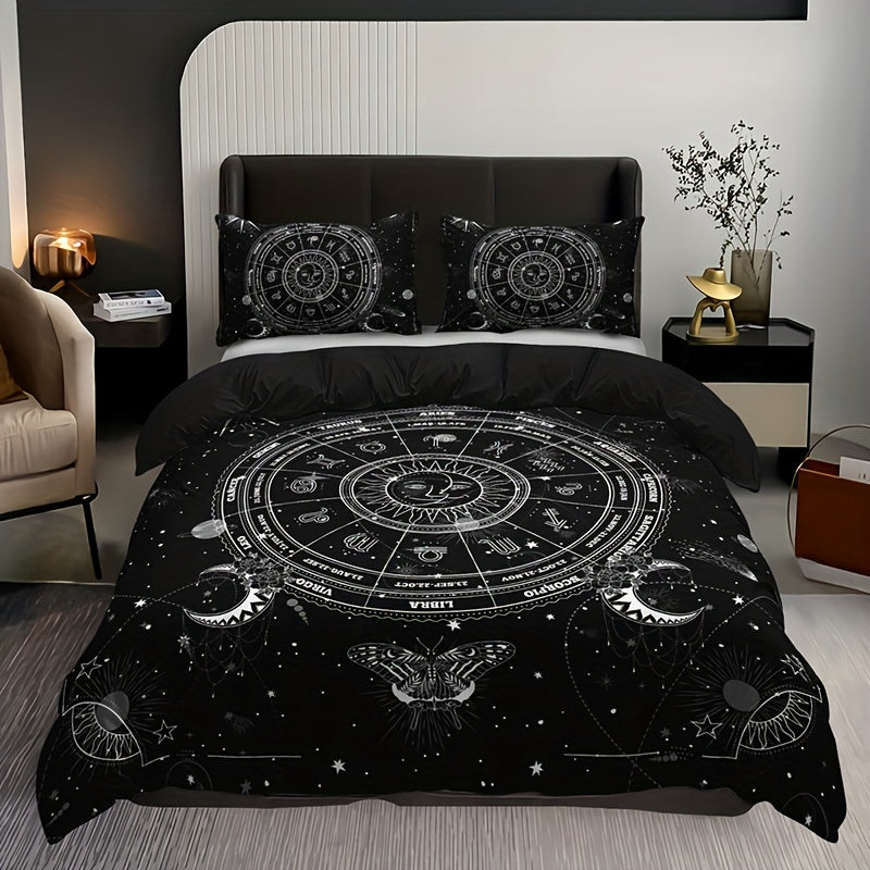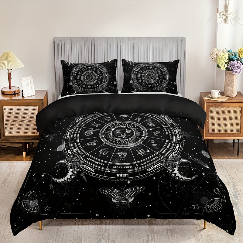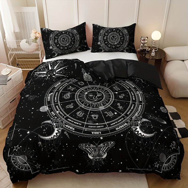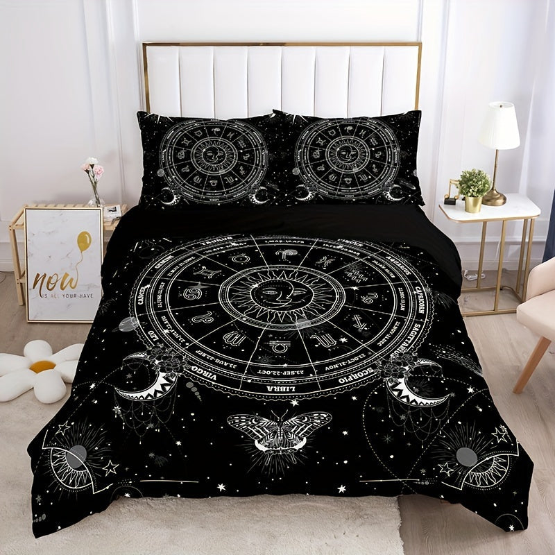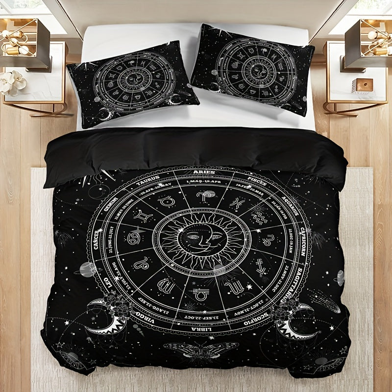 Комплект постельного белья из 3 предметов с принтом Солнца и Луны, мягкий и комфортный комплект для спальни или гостевой комнаты, включает 1 наволочку и 2 наволочки (без одеяла) - идеально для Рамадана