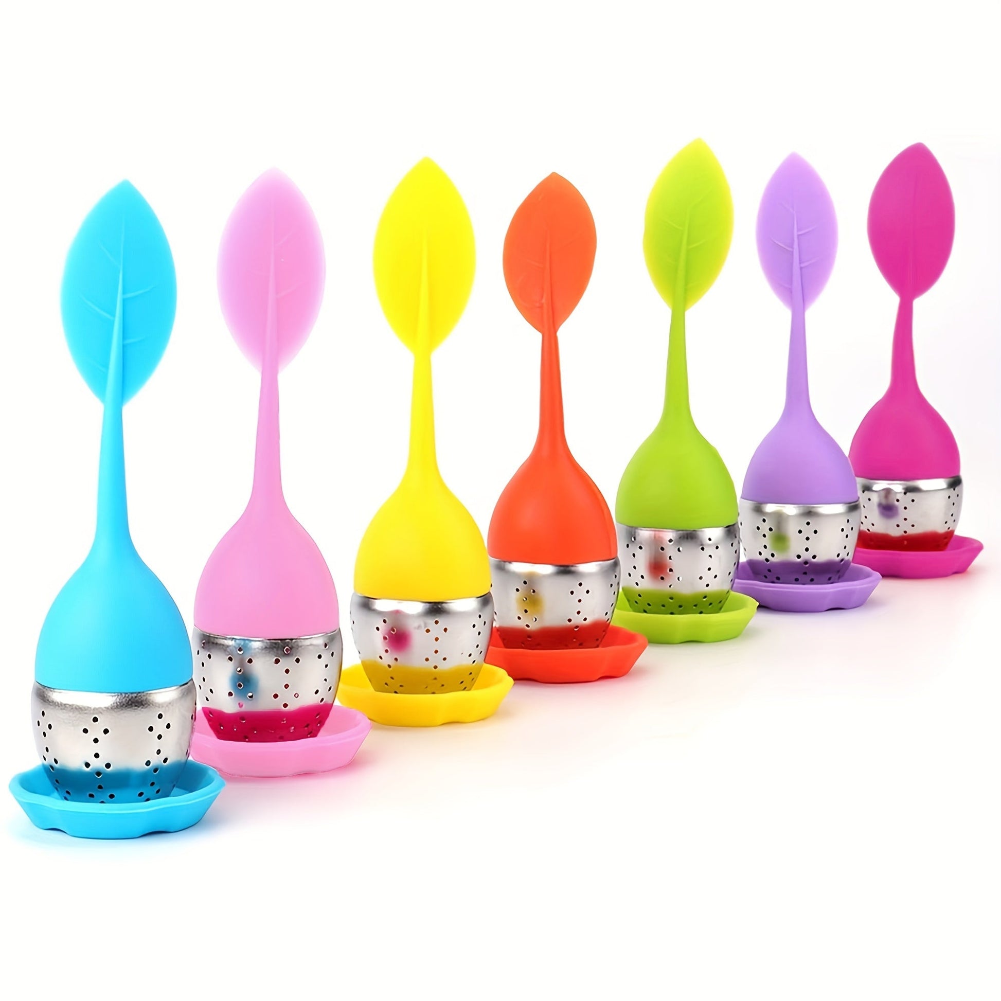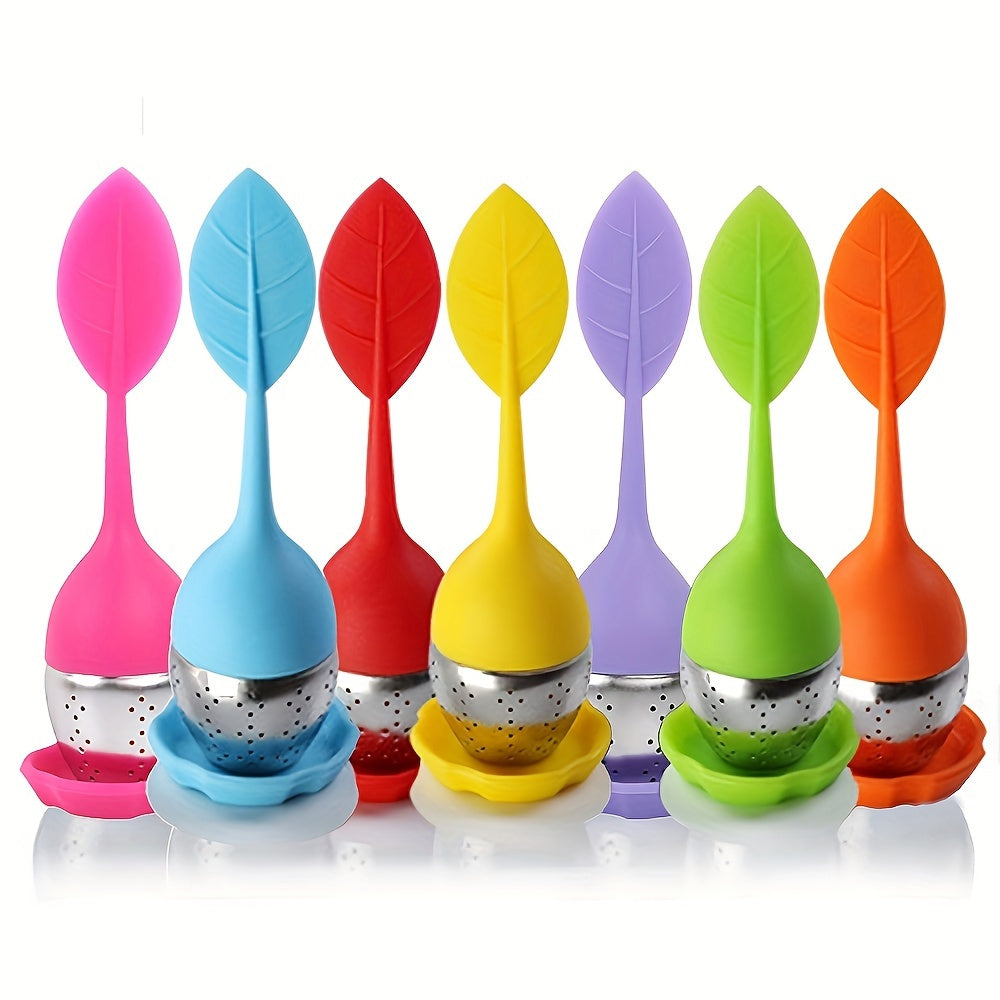 Набор для заваривания чая с силиконовой ручкой, ситечком из нержавеющей стали и поддоном для сбора капель. Включает 1 ситечко и 7 предметов. Идеально подходит для заваривания листового или травяного чая. Лучший выбор для любителей чая.