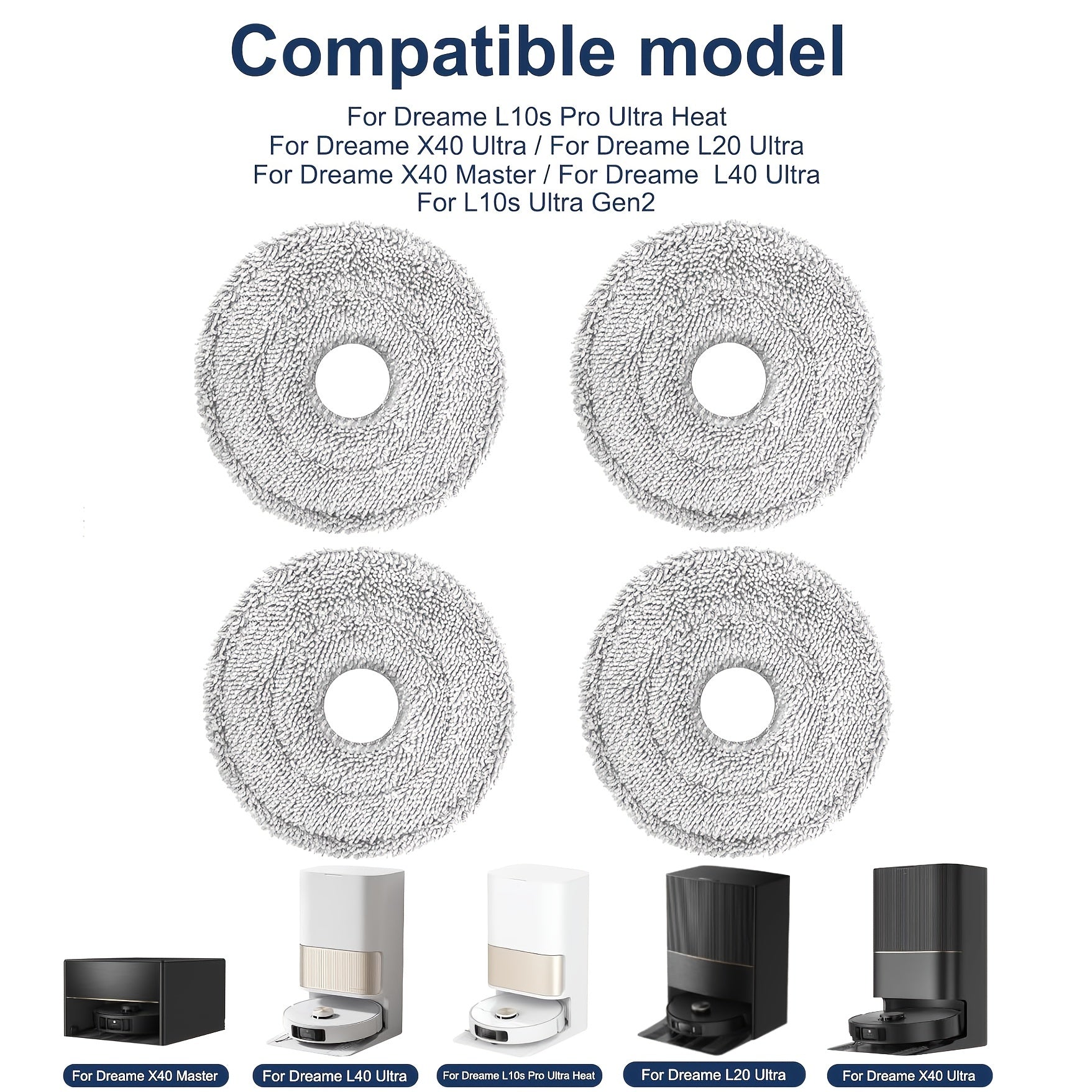 Паддинг для роботов-пылесосов Dreame 4-Pack разработан для совместимости с различными моделями, включая L10s Pro Ultra Heat, X40 Ultra, X30 Ultra, L10s Pro Gen 2, X30 Pro Plus, X30 Pro Ultra, L20 Ultra, L10s Ultra, L10s Plus и L10 Prime. Эти моющиеся