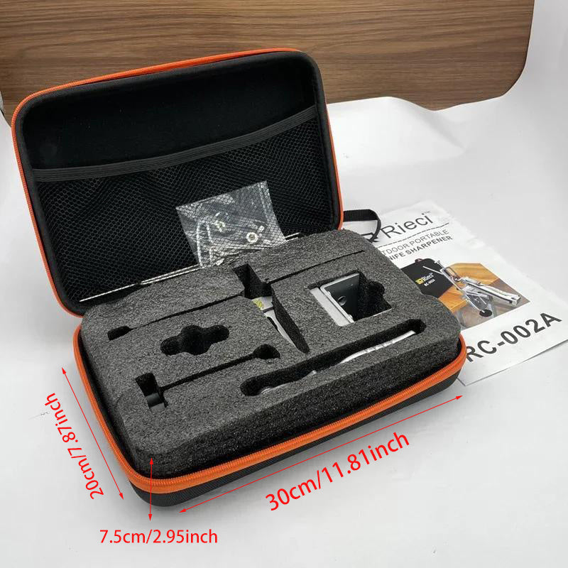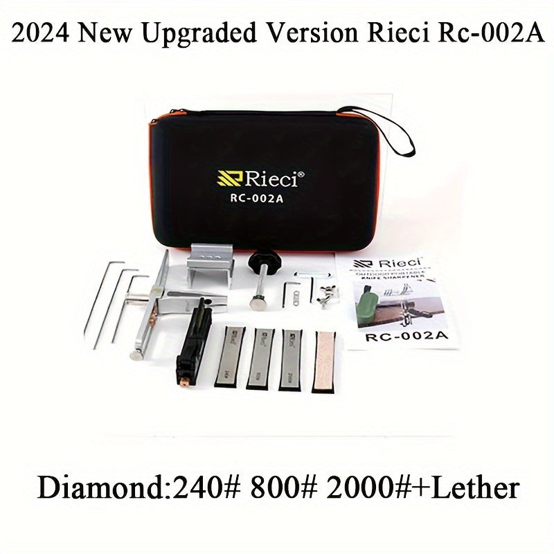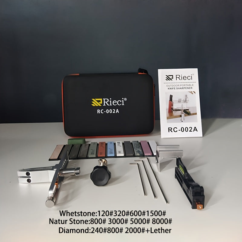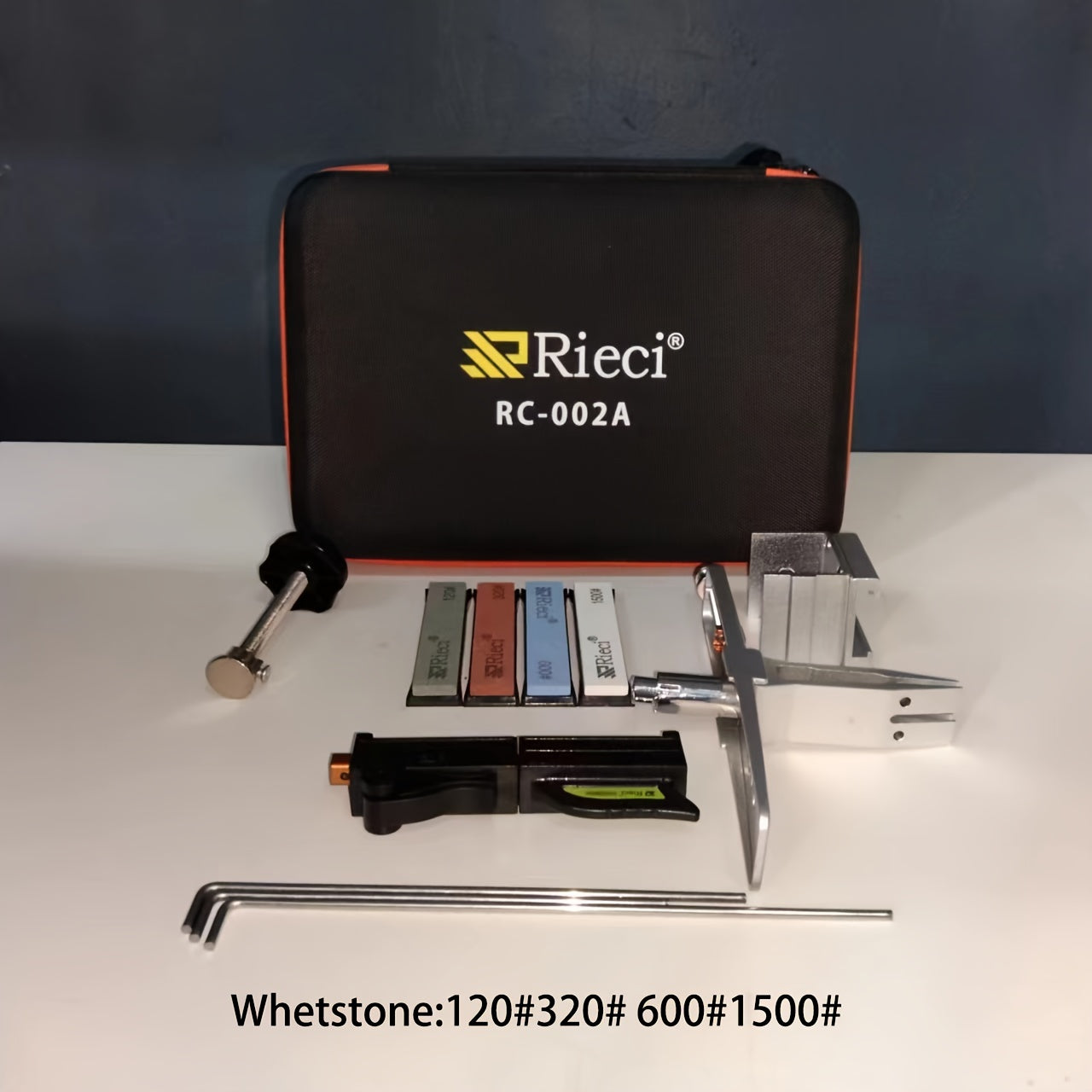 Набор профессиональных точилок для ножей Ricie RC-002A включает три алмазных камня (240/800/2000#) для регулировки углов, что делает его ручной системой заточки кухонных ножей. Электричество не требуется благодаря металлической конструкции.