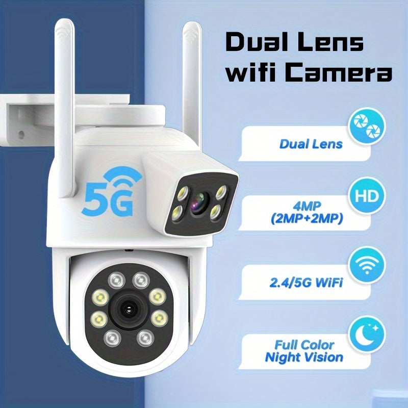 4МП Двойная линза PTZ камера видеонаблюдения Беспроводной WiFi Ночное видение Детектор движения Двухсторонний звук