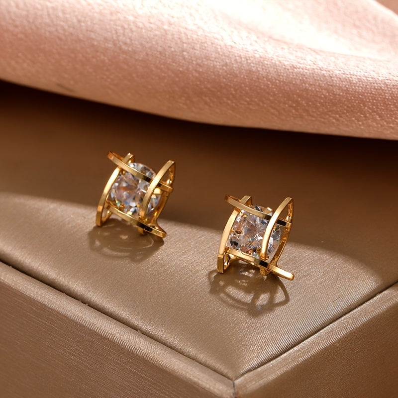 Серебряные серьги-гвоздики с неровным кубическим цирконием для женщин