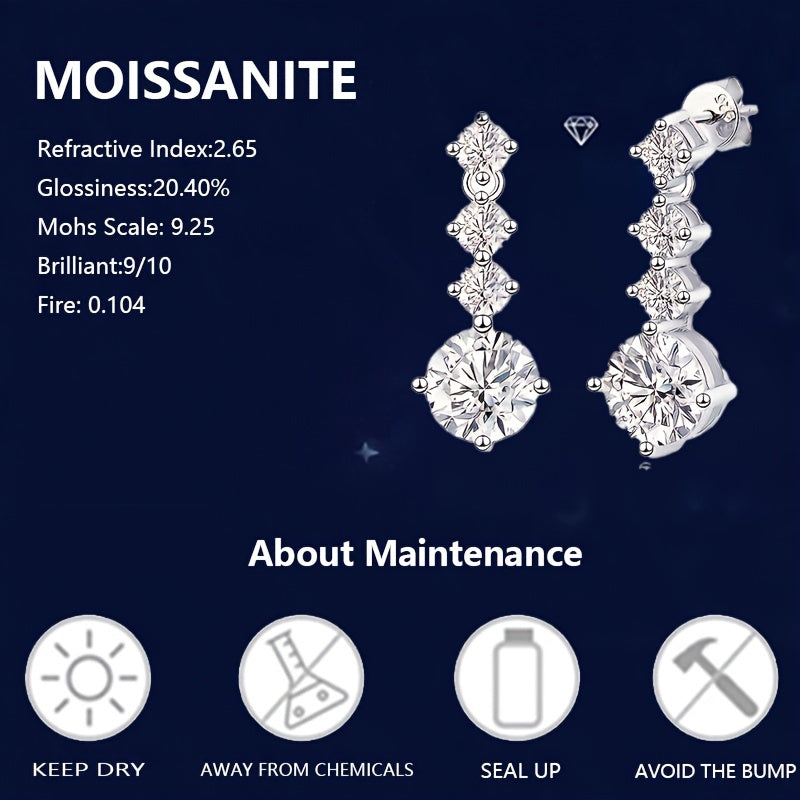 Серебряные серьги с моиссанитом 2,6 карата для женщин