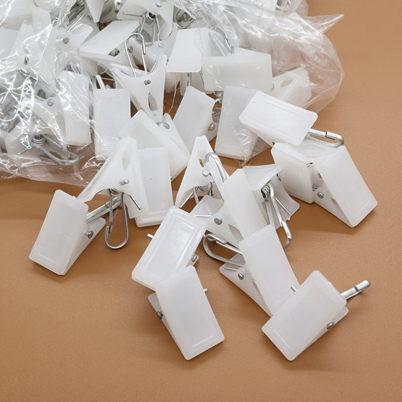 Этот набор из 20 белых пластиковых прищепок идеально подходит для подвешивания занавесок, халатов и других предметов. Обратите внимание, что эти прищепки следует мыть только вручную.
