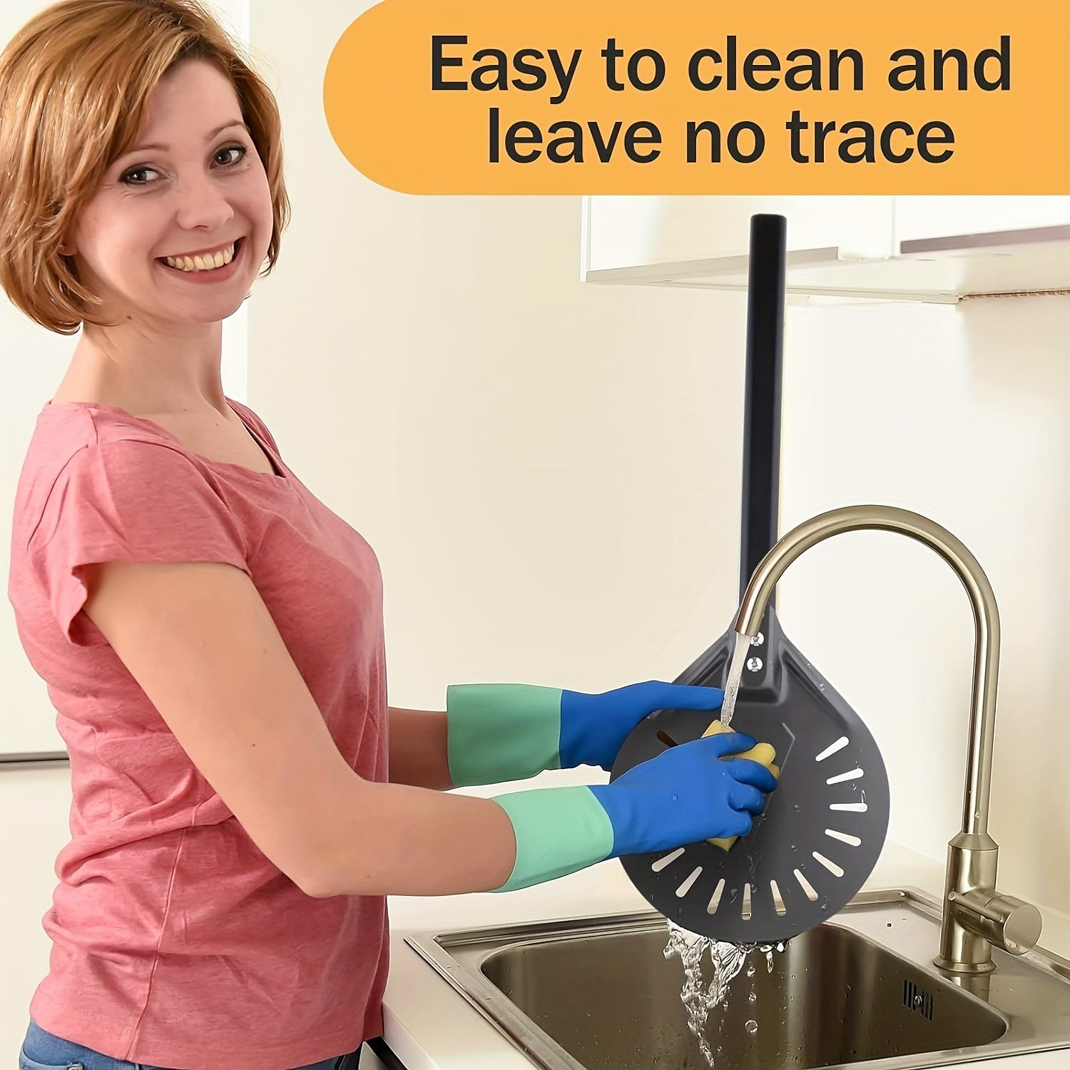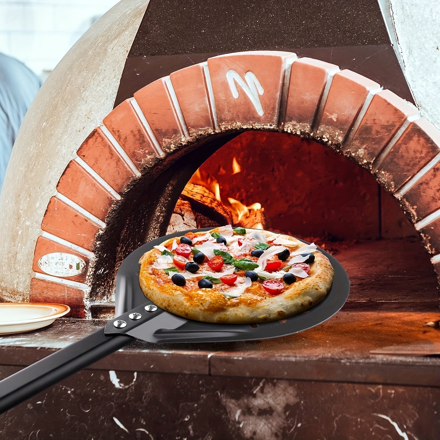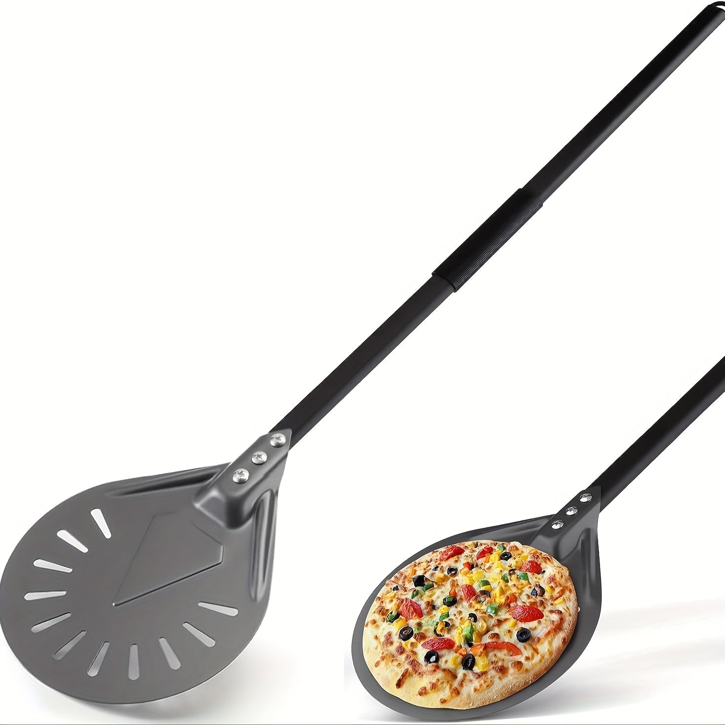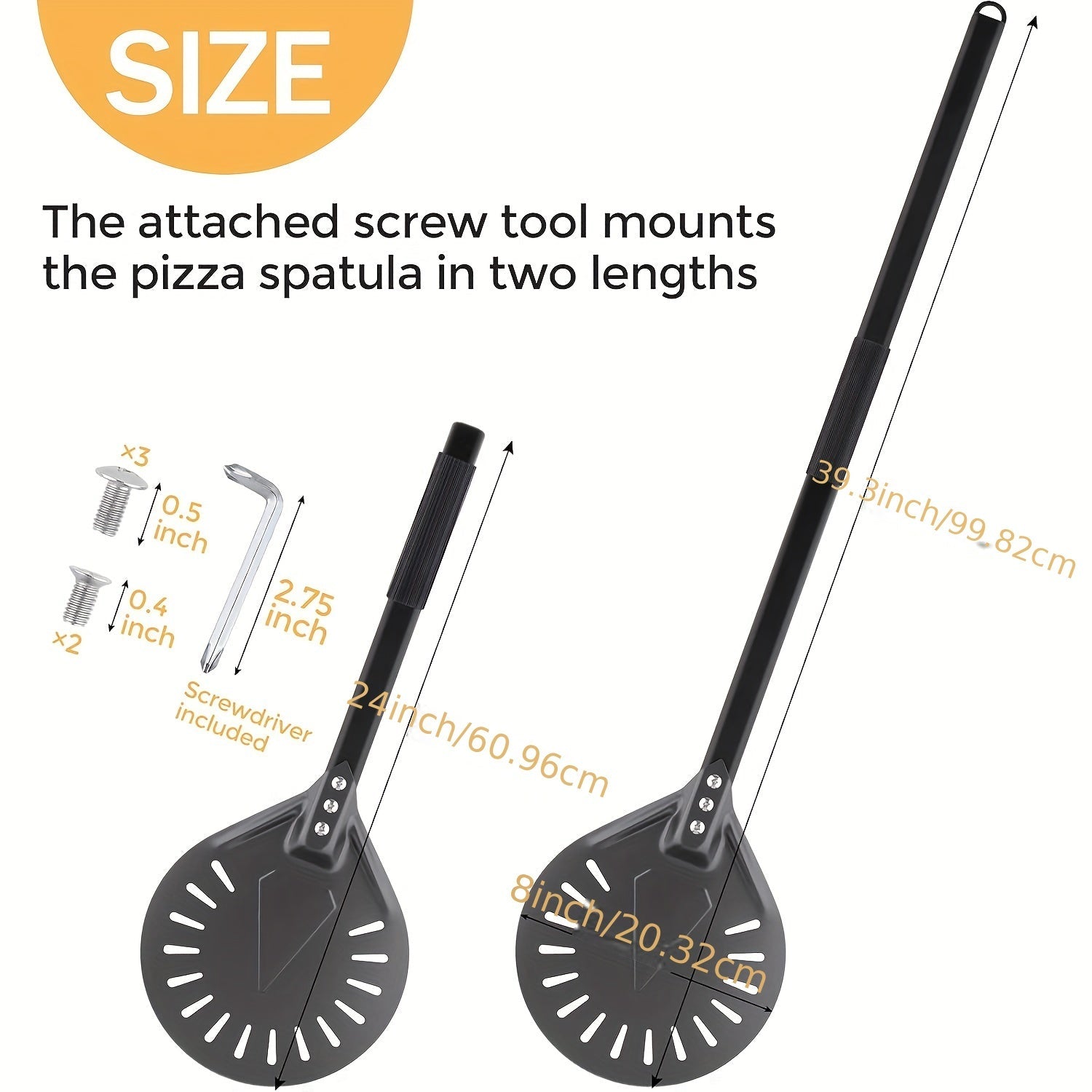 Этот алюминиевый лопата для пиццы длиной 8 дюймов и имеет нескользящую ручку для удобного использования. Ручка съемная, длиной 80,01 см, что делает ее идеальной для домашних пицц и хлеба.