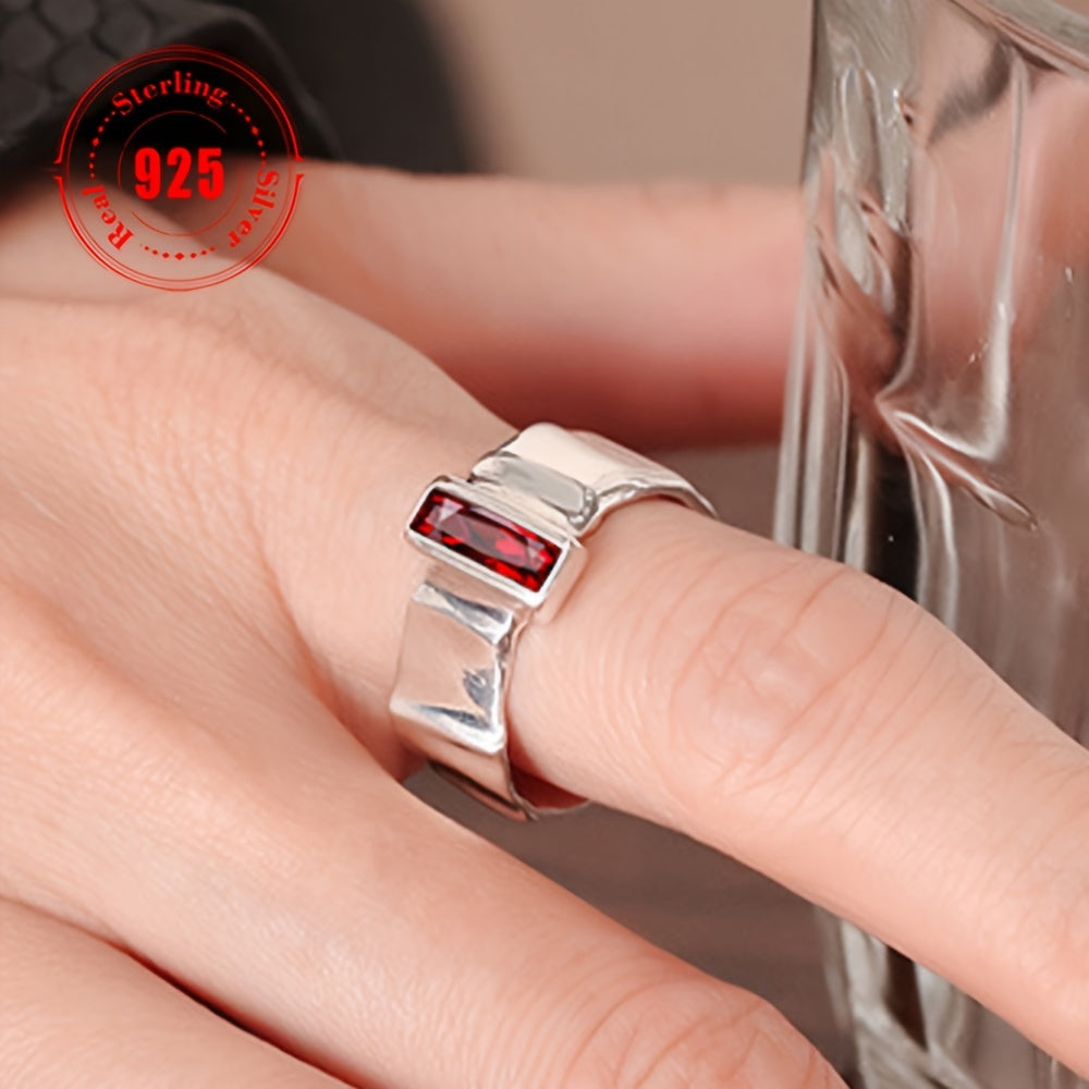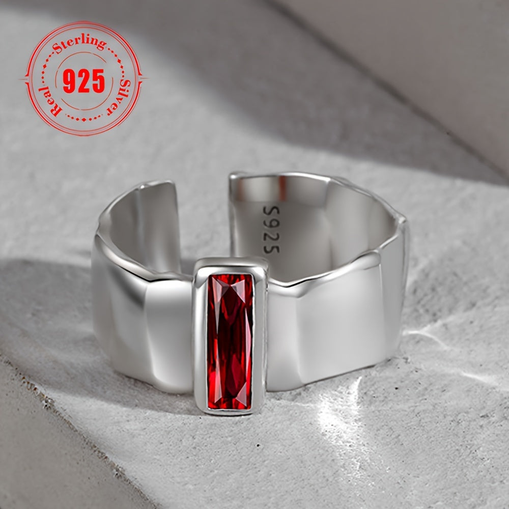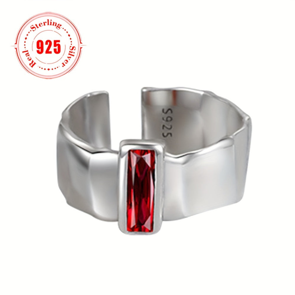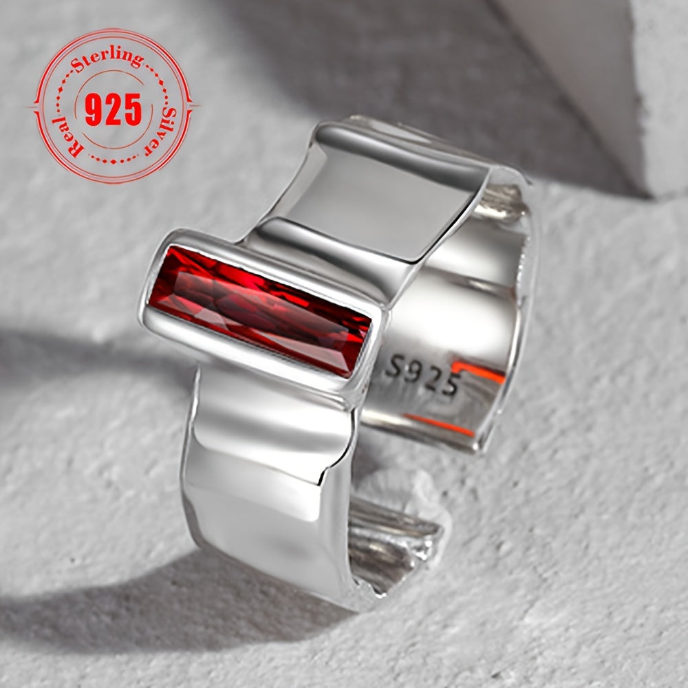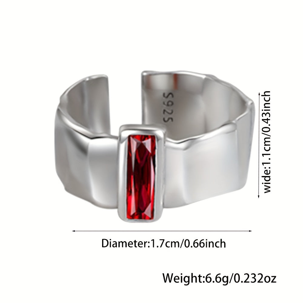 Это стильное открытое кольцо, изготовленное из серебра 925 пробы, украшено элегантным красным синтетическим цирконием в стиле хип-хоп. Идеально подходит для вечеринок и мероприятий, это кольцо весит в общей сложности 6,6 г.