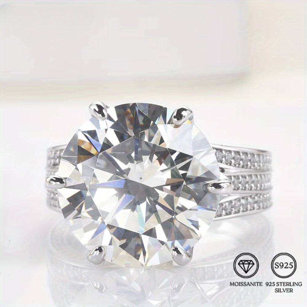Кольцо из стерлингового серебра с моиссанитом, 10 карат, круглая огранка, гипоаллергенное украшение