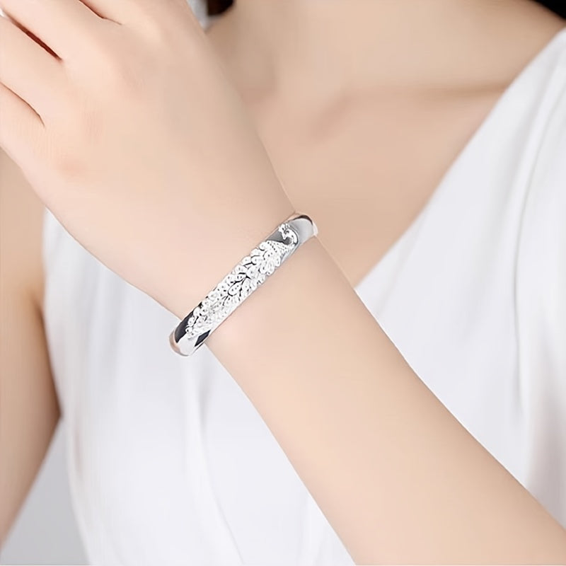 Серебряный открытый регулируемый браслет для женщин и девочек