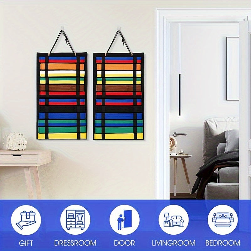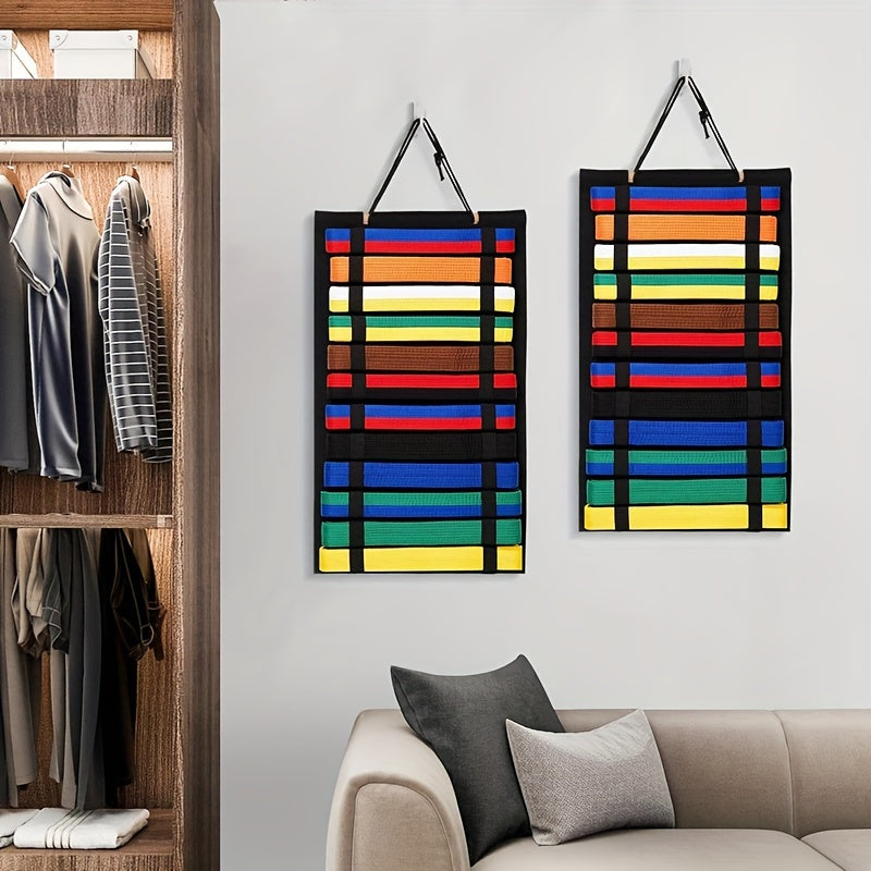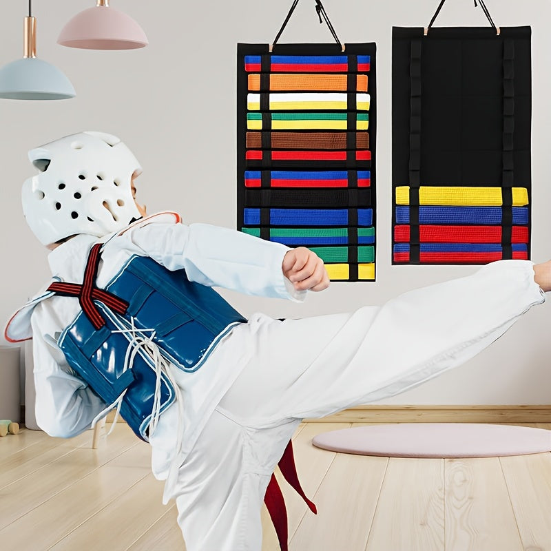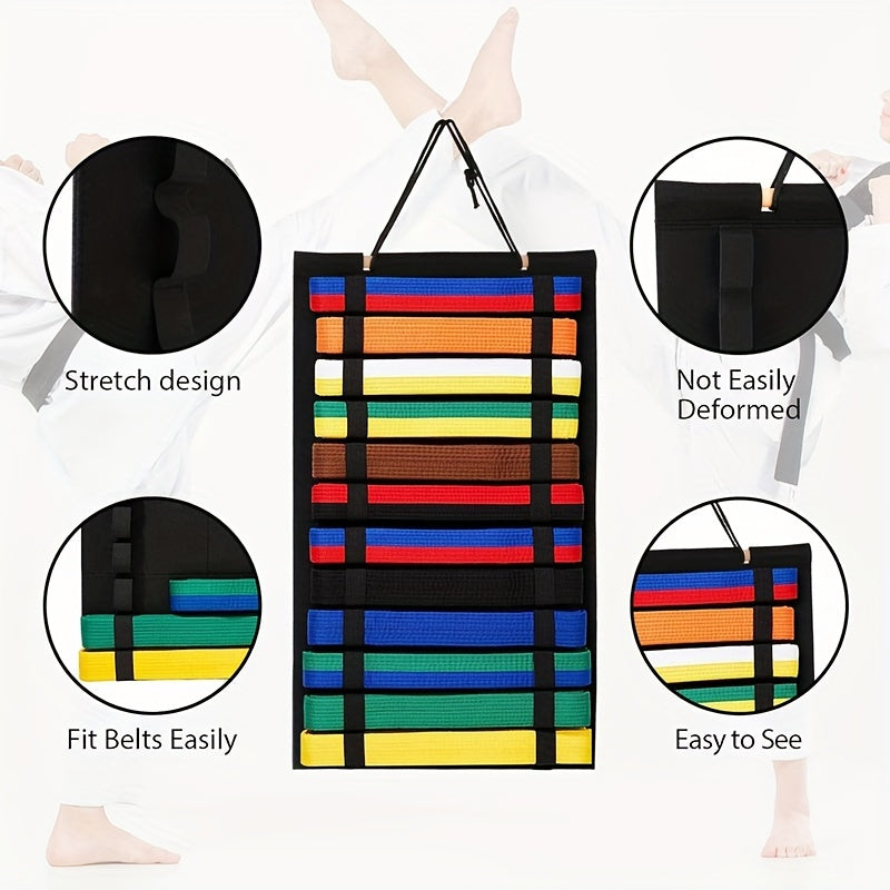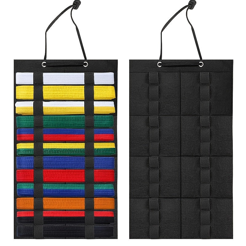 Эта висячая сумка для хранения поясов карате может вместить до 12 поясов боевых искусств, идеально подходит для учеников без аксессуаров.