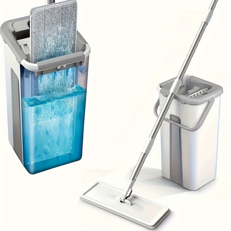 Комплект влажной и сухой швабры для пола с микрофибровыми насадками, ведро для отжима воды, легкая уборка