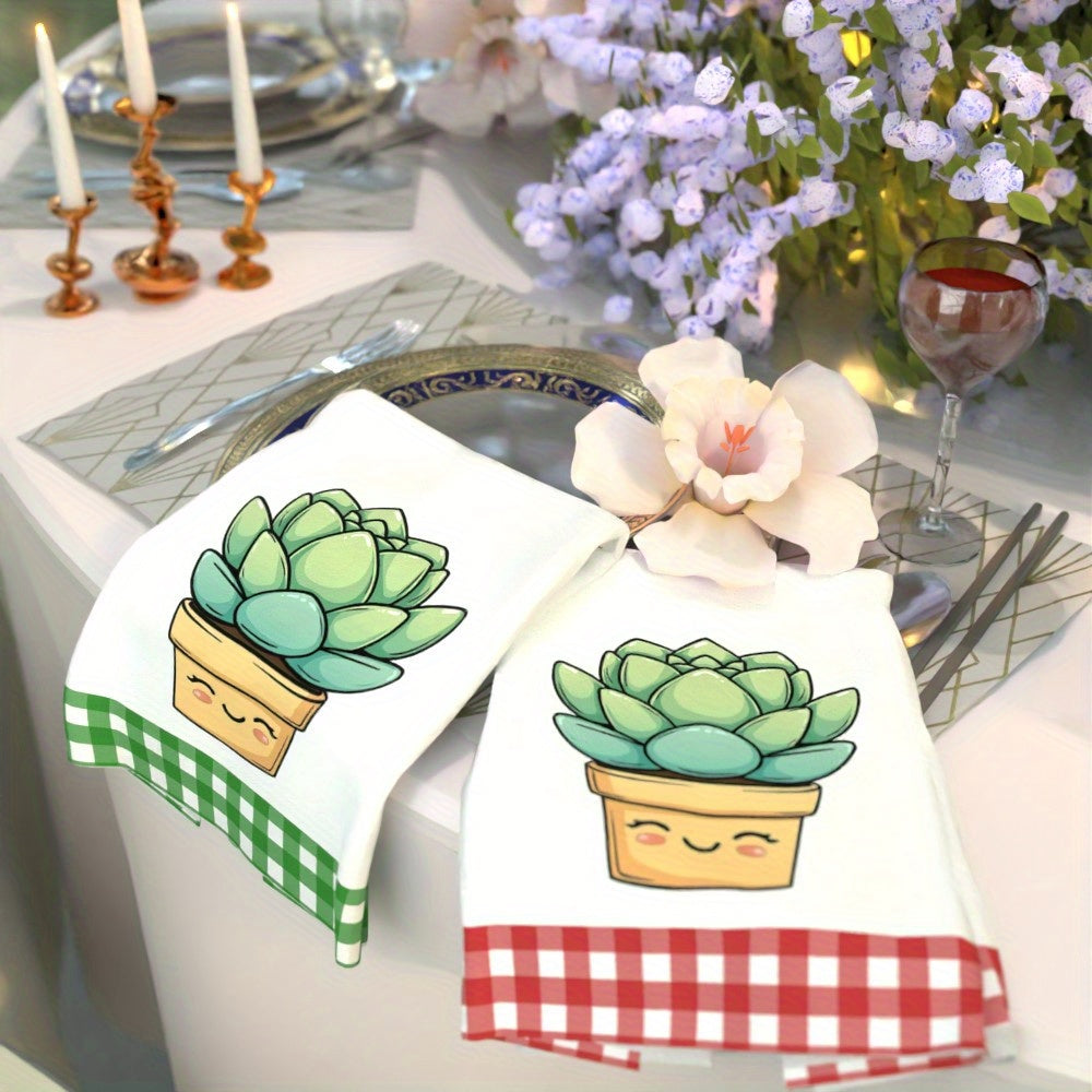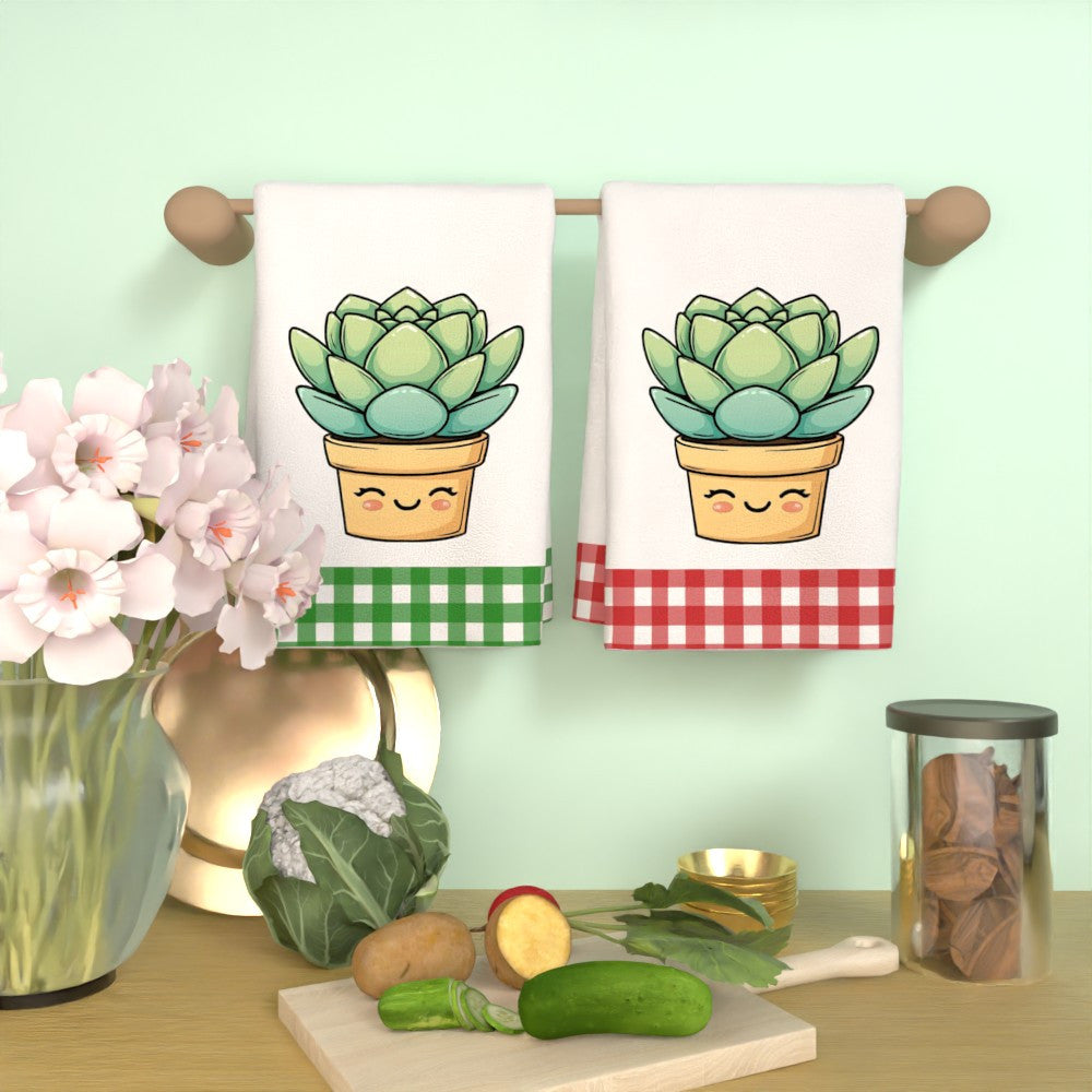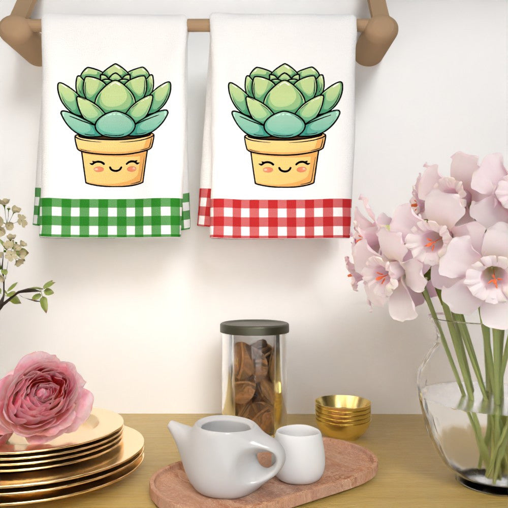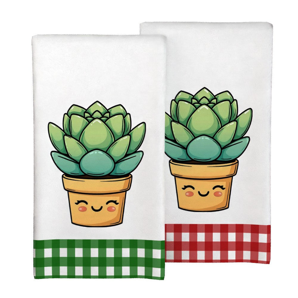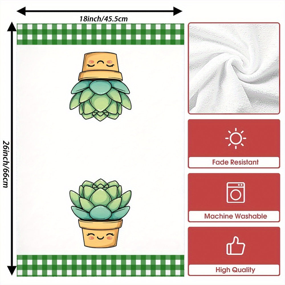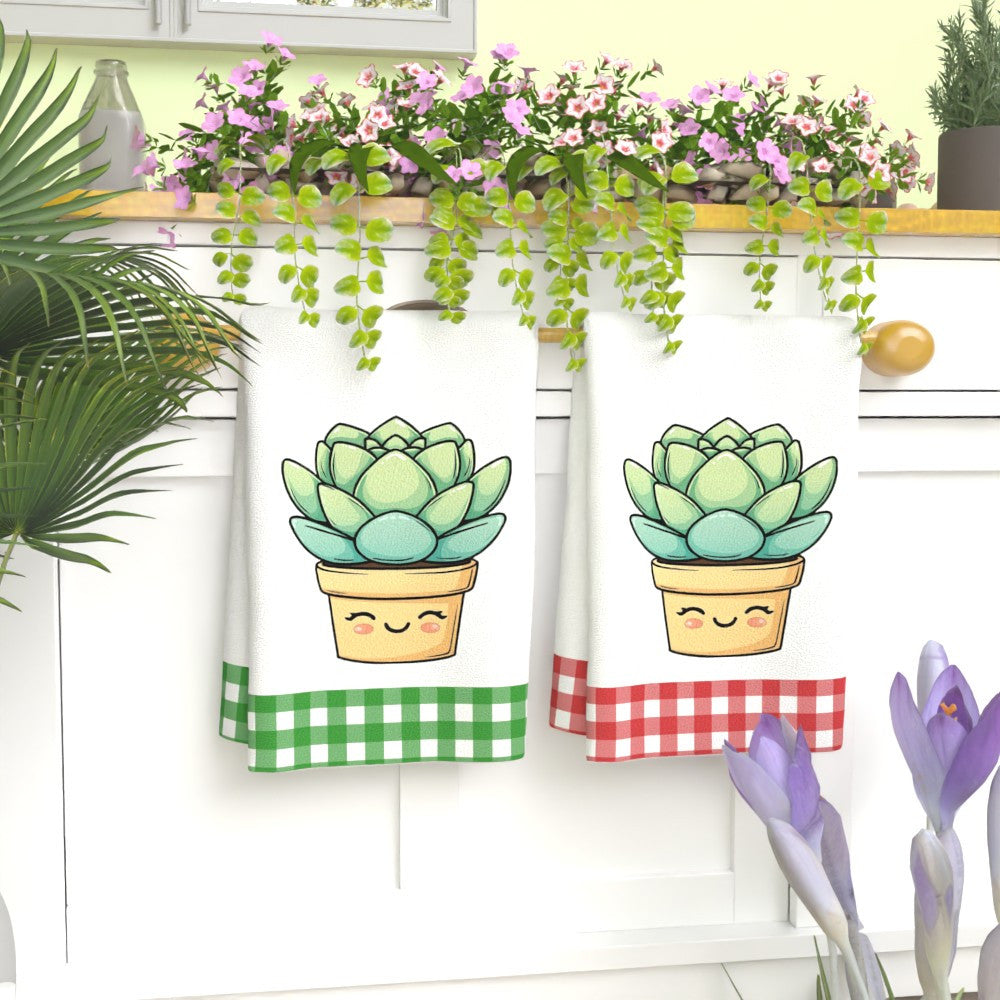 Набор из 2 впитывающих хлопковых чайных полотенец с дизайном в виде горшечного растения, яркие цвета