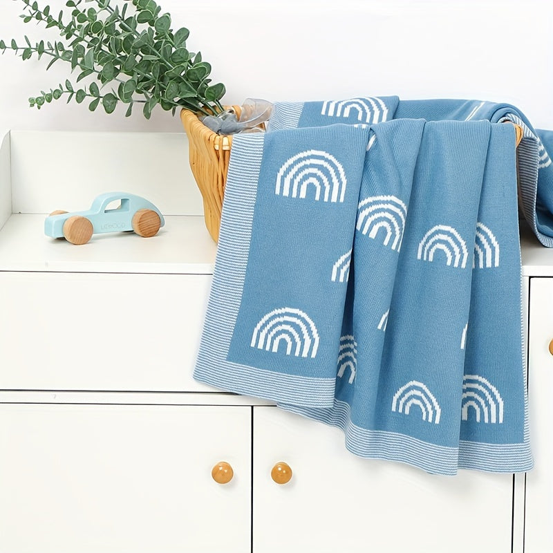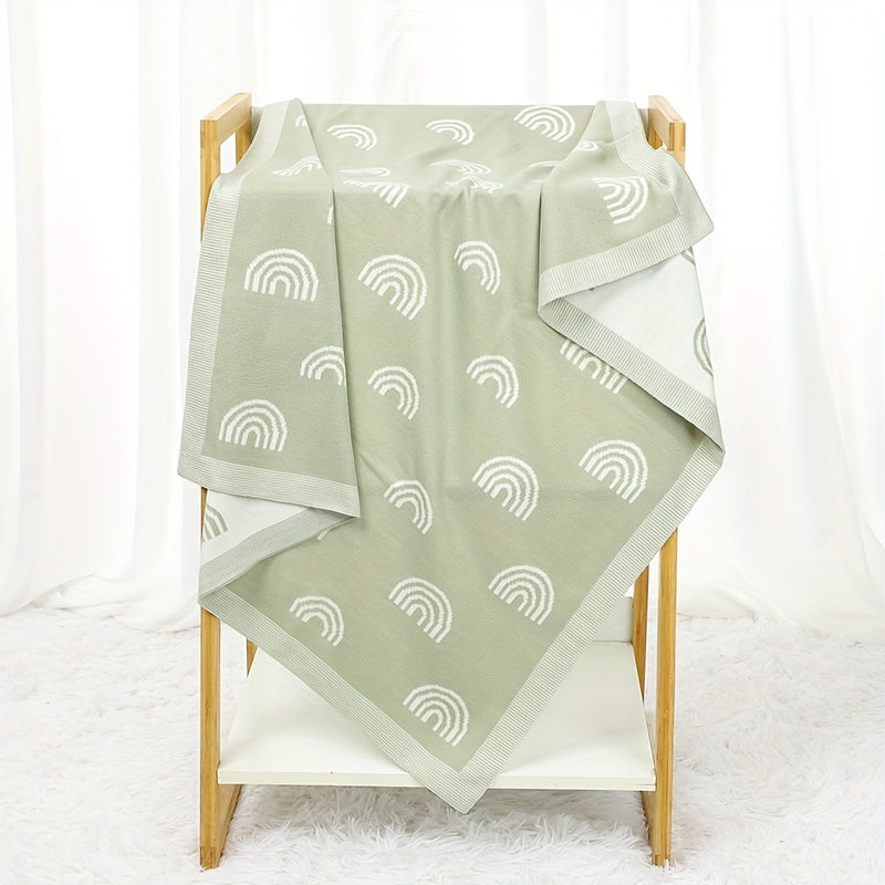 Детское одеяло из радужного жаккардового трикотажа для коляски и кровати в голубом, зеленом, сером и розовом цветах