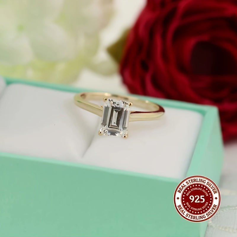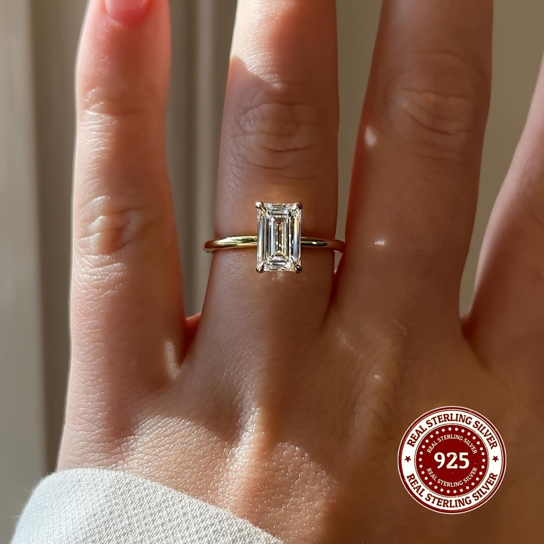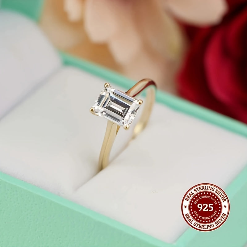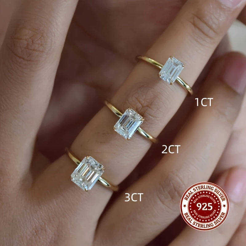 Кольцо из стерлингового серебра с прямоугольным кубическим цирконием 1CT для женщин