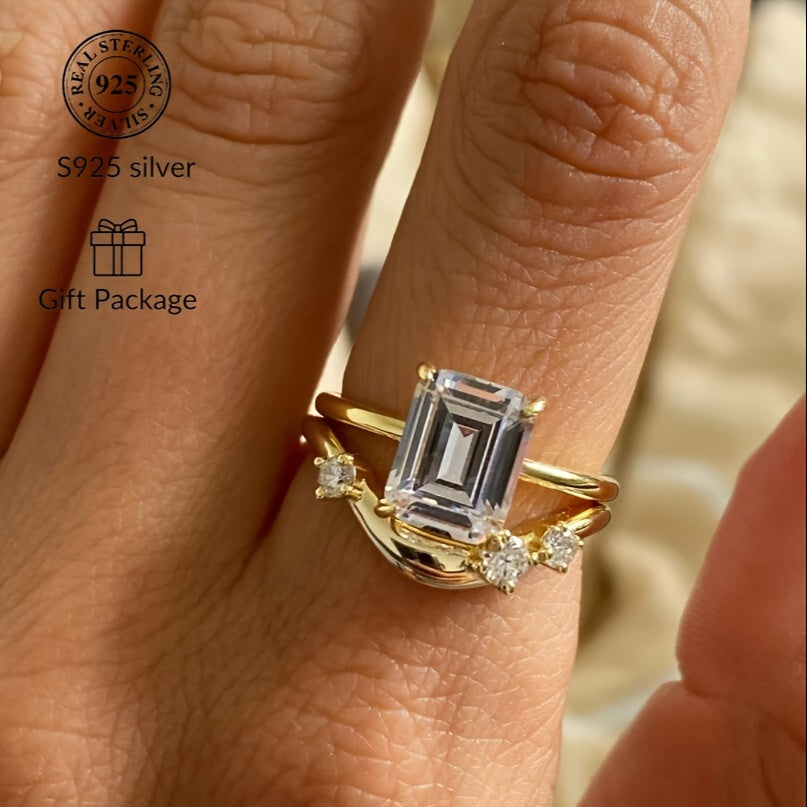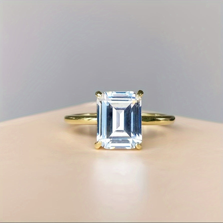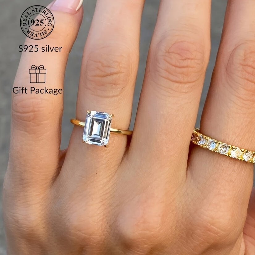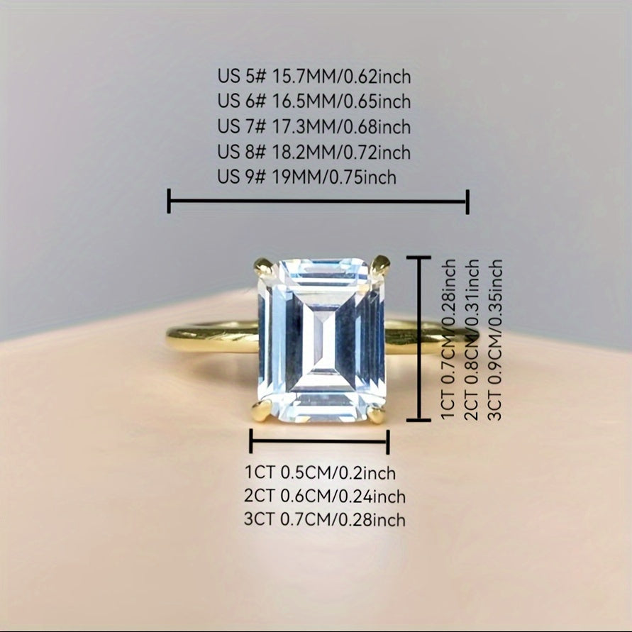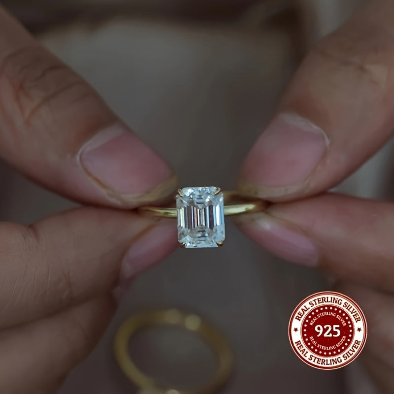Кольцо из стерлингового серебра с прямоугольным кубическим цирконием 1CT для женщин