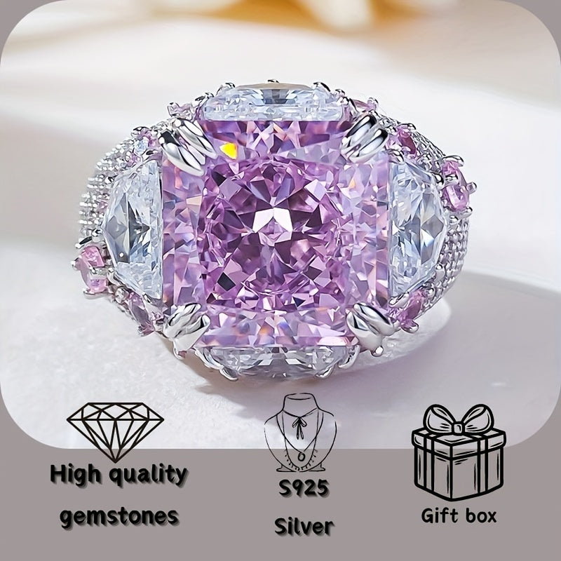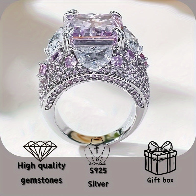 Женское серебряное кольцо с розовым и белым дизайном 12x12 из высокоуглеродистой стали для повседневной носки и вечеринок
