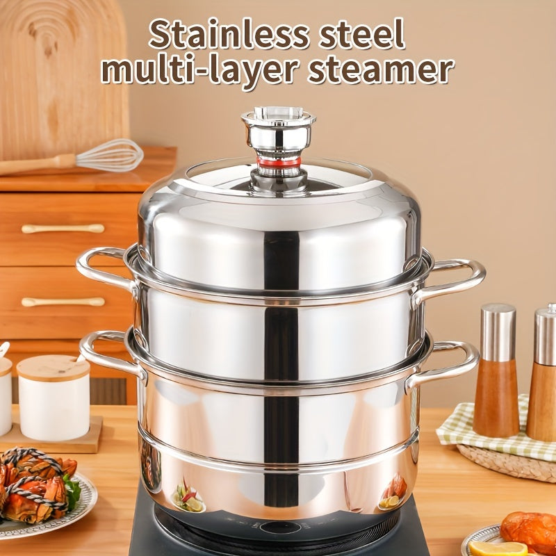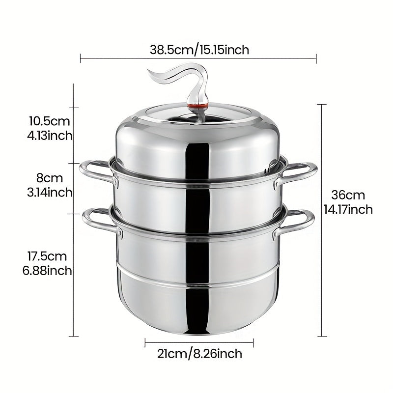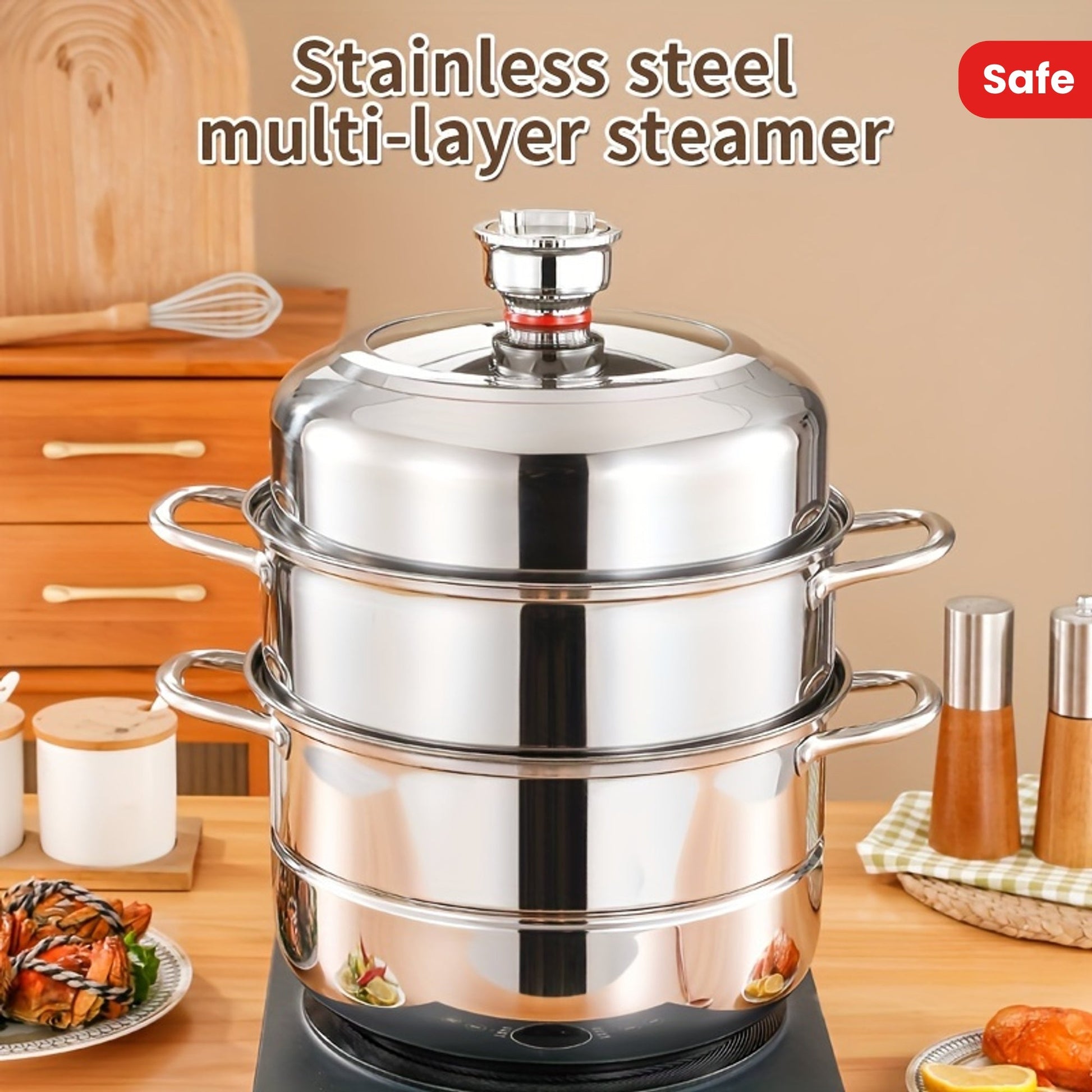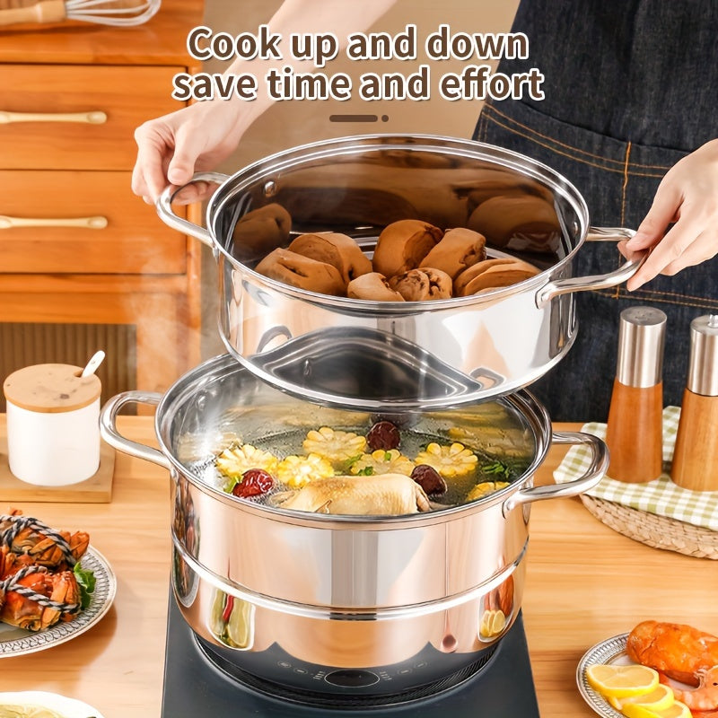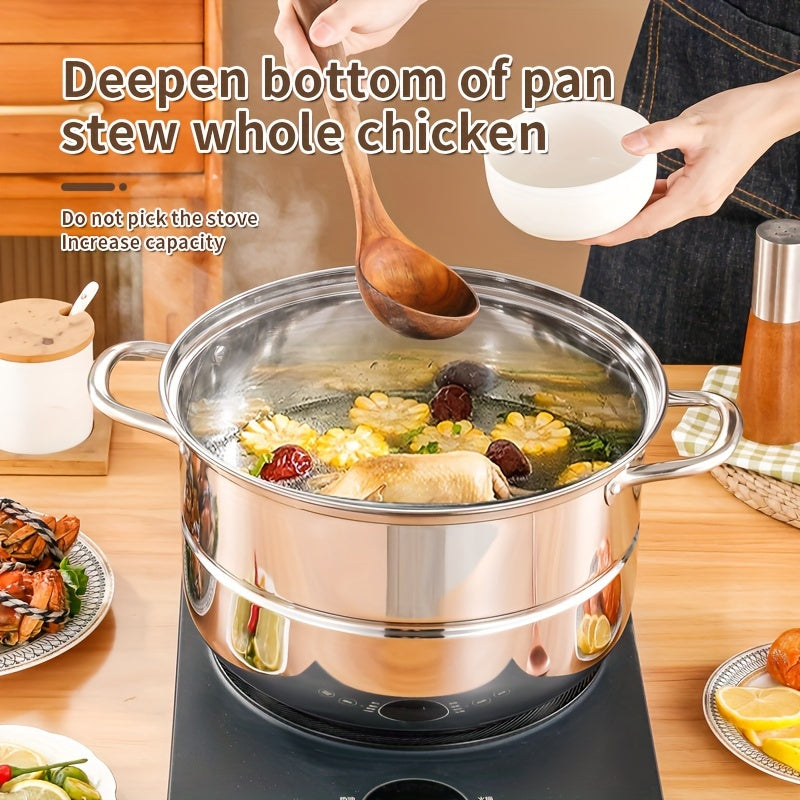 Набор пароварки из нержавеющей стали 3-слойный с кастрюлей для супа, паровыми пластинами и крышкой