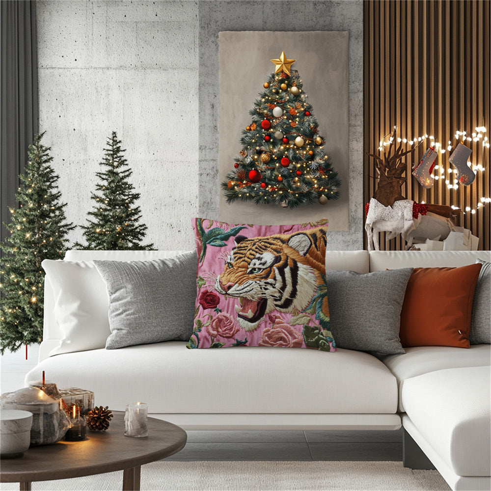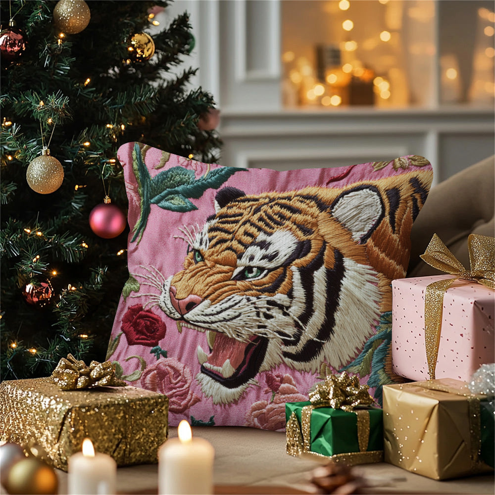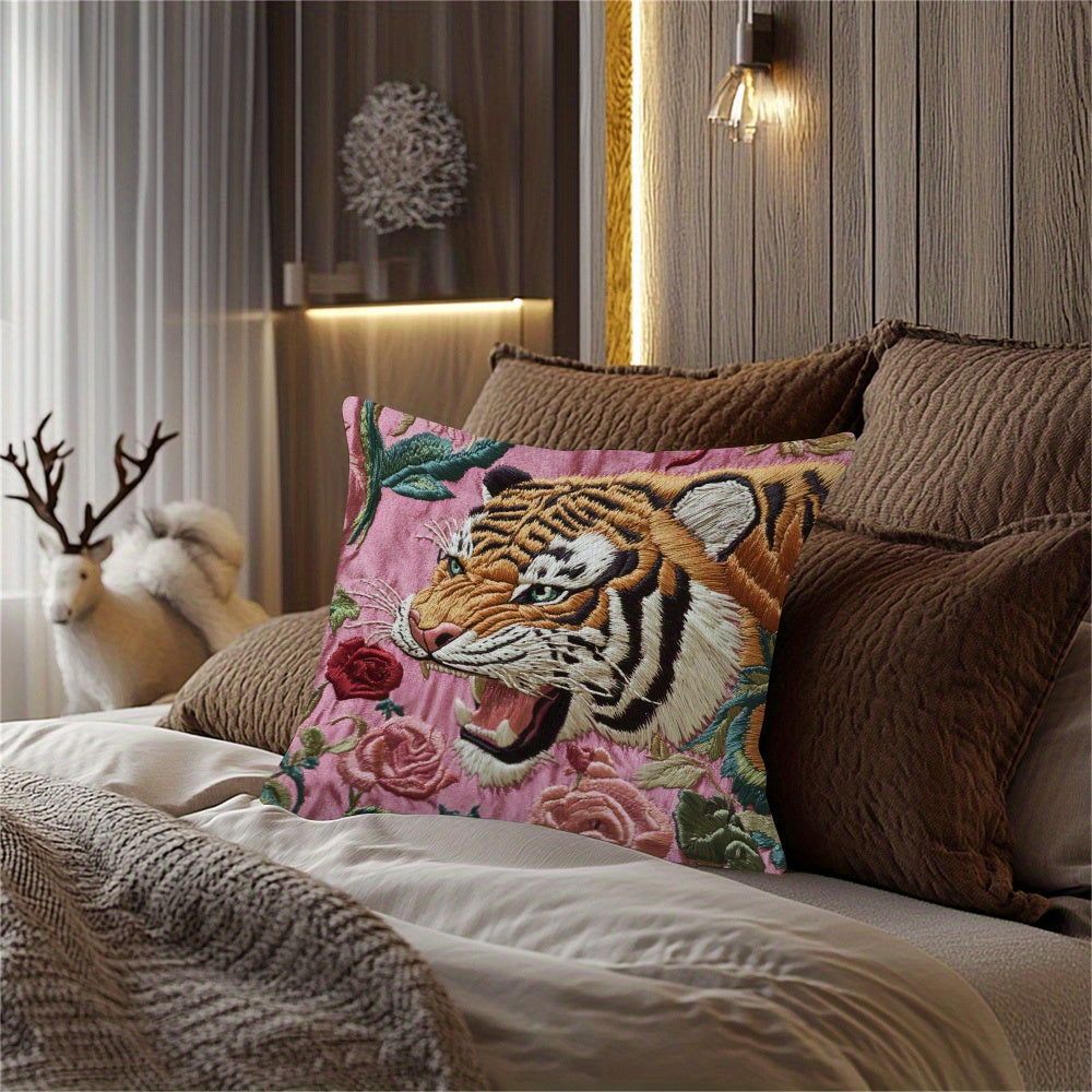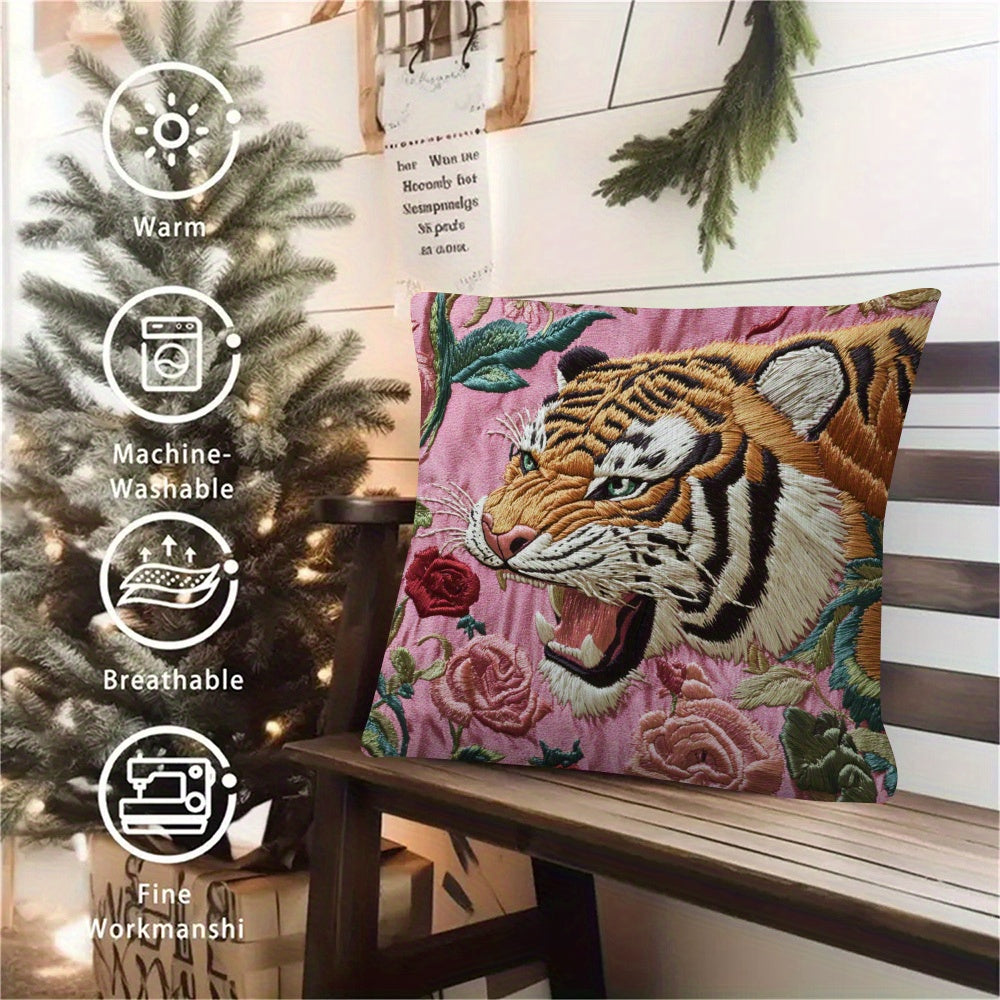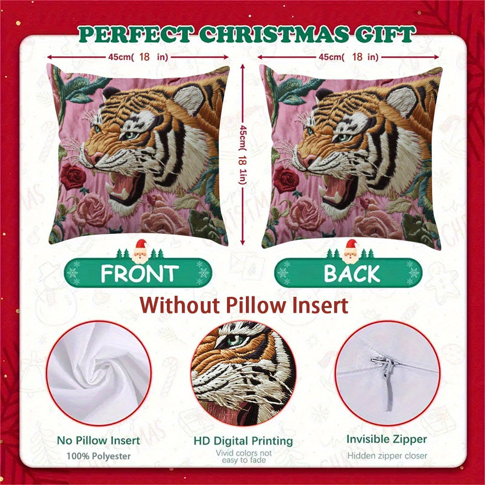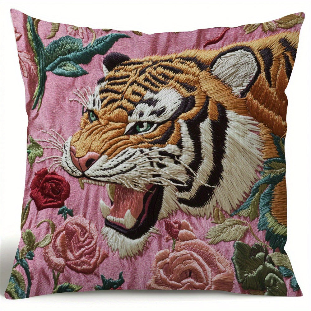 Подушка с вышивкой «Тигр и розы» с двусторонним полиэстеровым чехлом, идеальный праздничный декор для дома на День благодарения и Рождество, совместима с различными стилями - Артикул HJY647