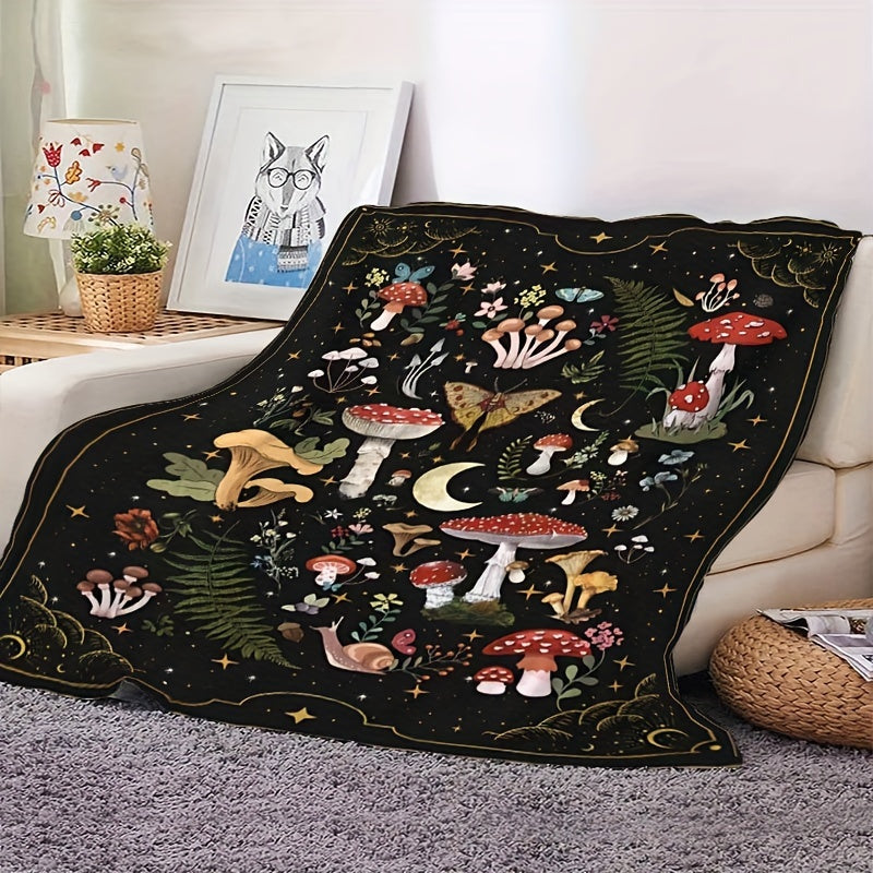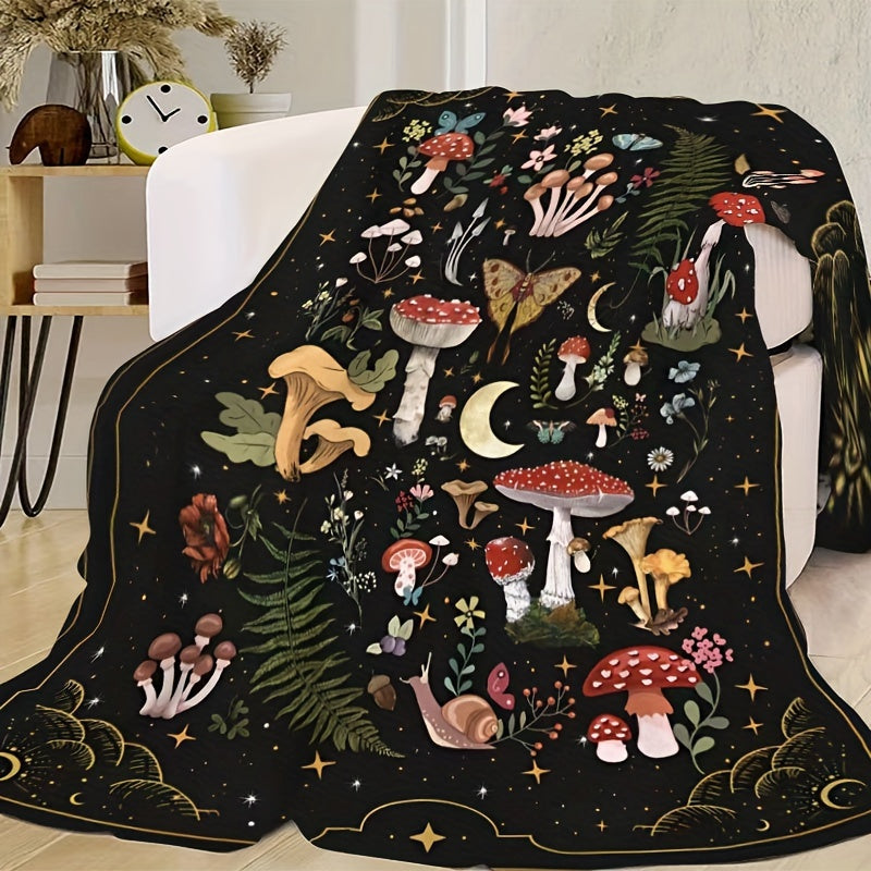 Лучший выбор для клиентов: Уютное фланелевое одеяло с грибами и бабочками - роскошно мягкое, уютное и гипоаллергенное для дивана, кровати или рабочего места - идеальный подарок для готической ведьмы на Рождество