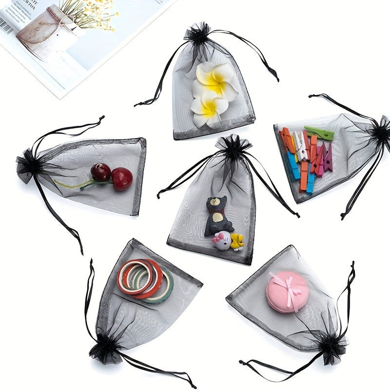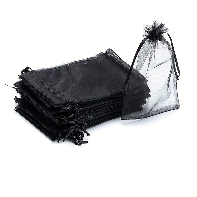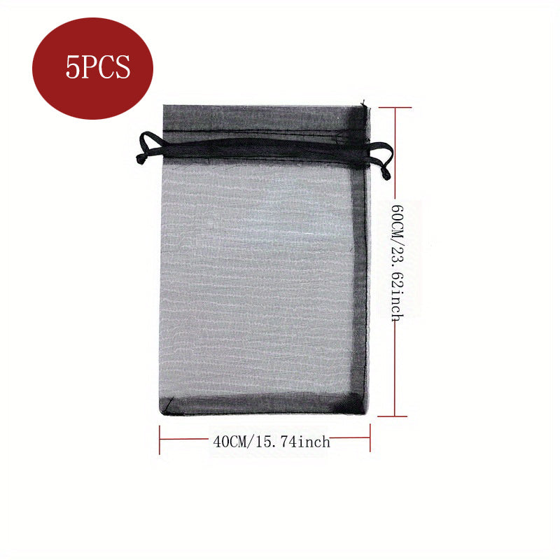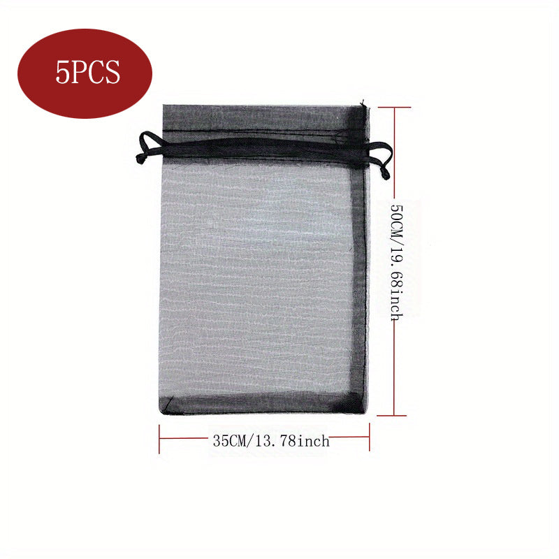 Набор из 5 больших черных органзовых подарочных мешков для упаковки свадебных конфет 35x50см или 40x60см