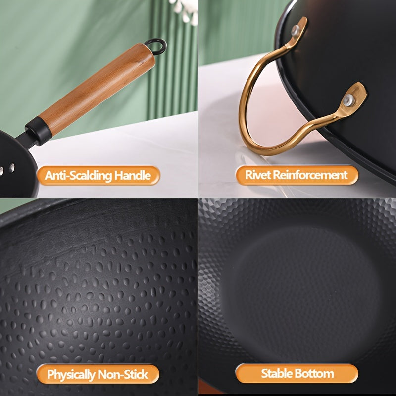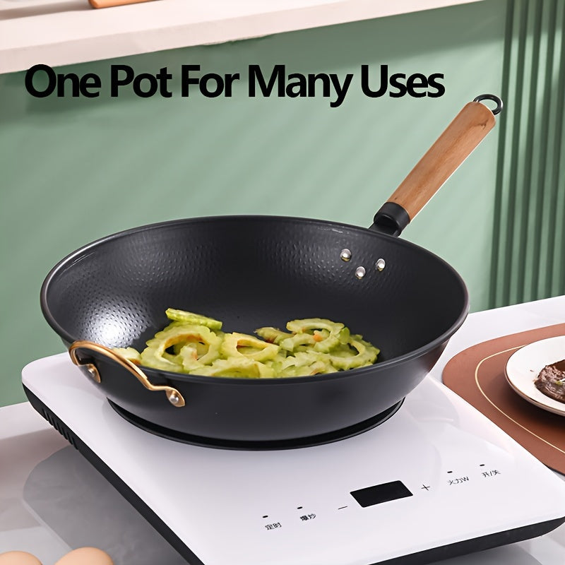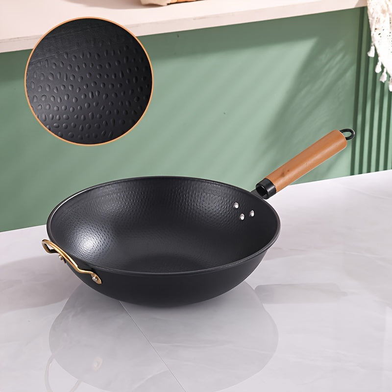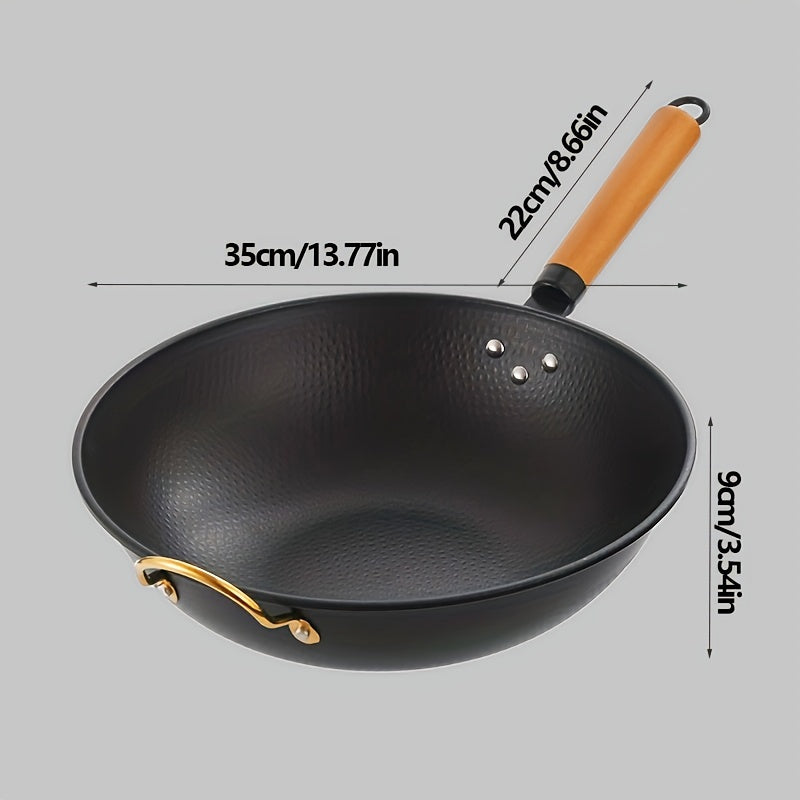 Традиционная сковорода-вок с деревянной ручкой, 34,98 см, антипригарная, плоское дно, подходит для индукционных и газовых плит, универсальная сковорода для жарки.
