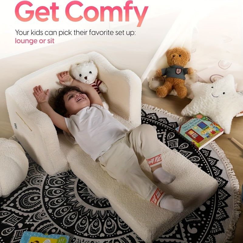 Трансформируемый детский стул, который превращается в кресло-реклайнер, мягкий шерповый диван для мальчиков и девочек | Уютное и Комфортное Детское Кресло для Отдыха | Идеальная мебель для игровой комнаты или уголка для чтения