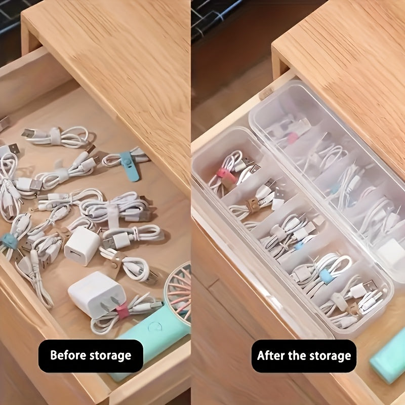 Прозрачная пластиковая коробка-органайзер с крышкой для многокамерного хранения кабелей, канцелярских принадлежностей, ювелирных изделий и карт, идеально подходит для организации в домашних условиях.