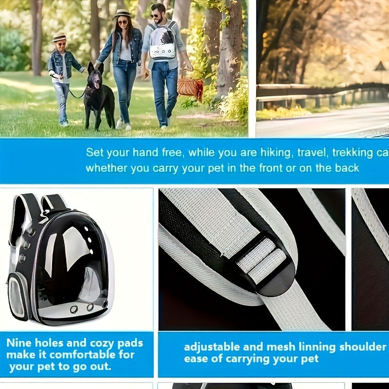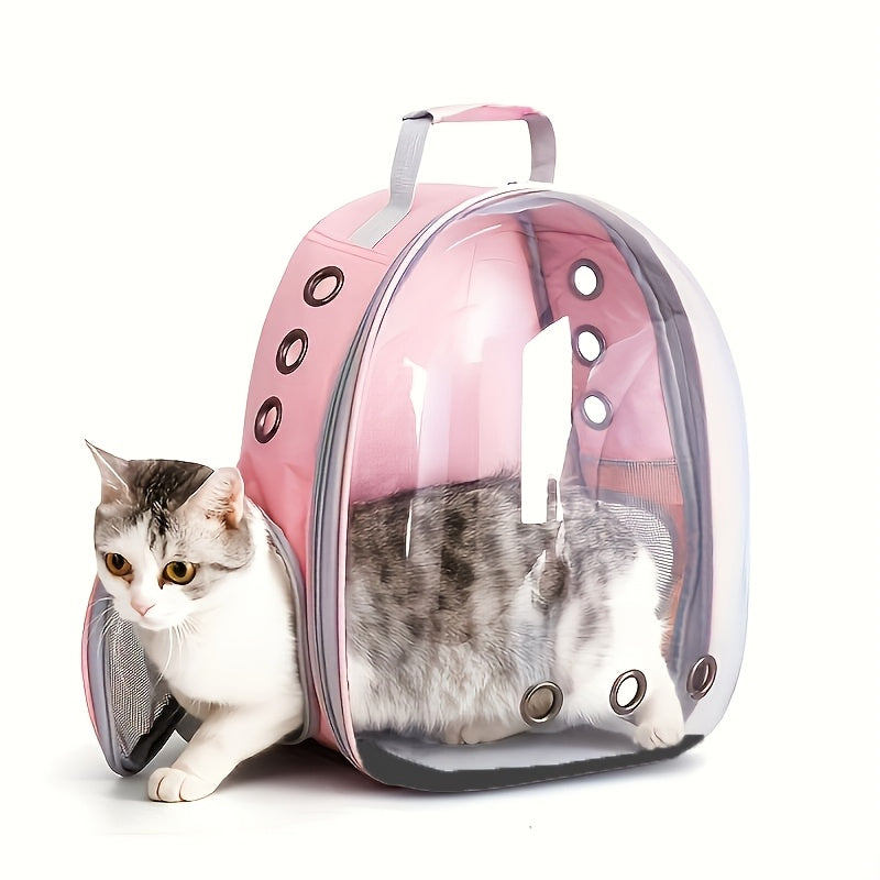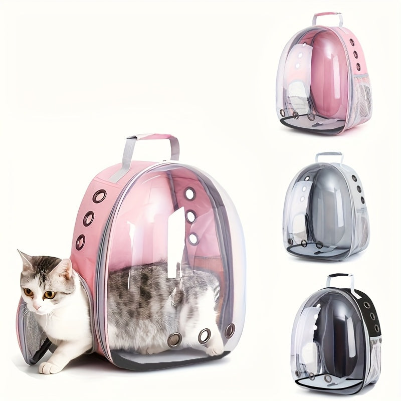 Прозрачный рюкзак-переноска из ПВХ для кошек и маленьких собак с дышащим дизайном в форме капсулы, застежкой на молнии, прочной ручкой и вентиляционными отверстиями. Идеально подходит для походов, путешествий и использования на улице.