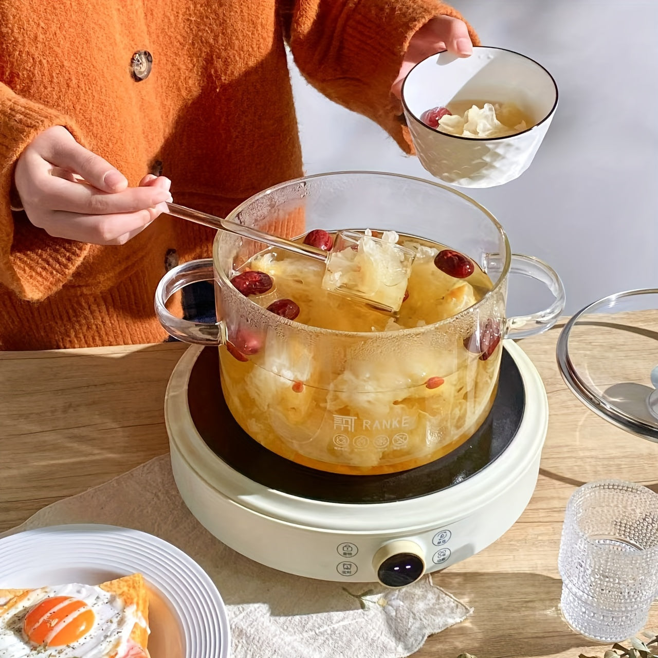Прозрачная кастрюля для готовки на плите из боросиликатного стекла с герметичной отделкой, подходит для индукционной готовки. Кухонный гаджет, не требующий электроэнергии.